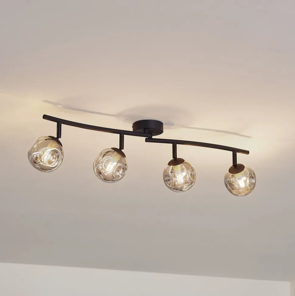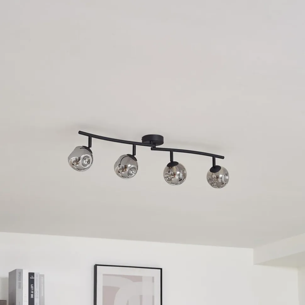 Lindby Valentina plafondlamp, grijs/zwart, 4-lamps, glas