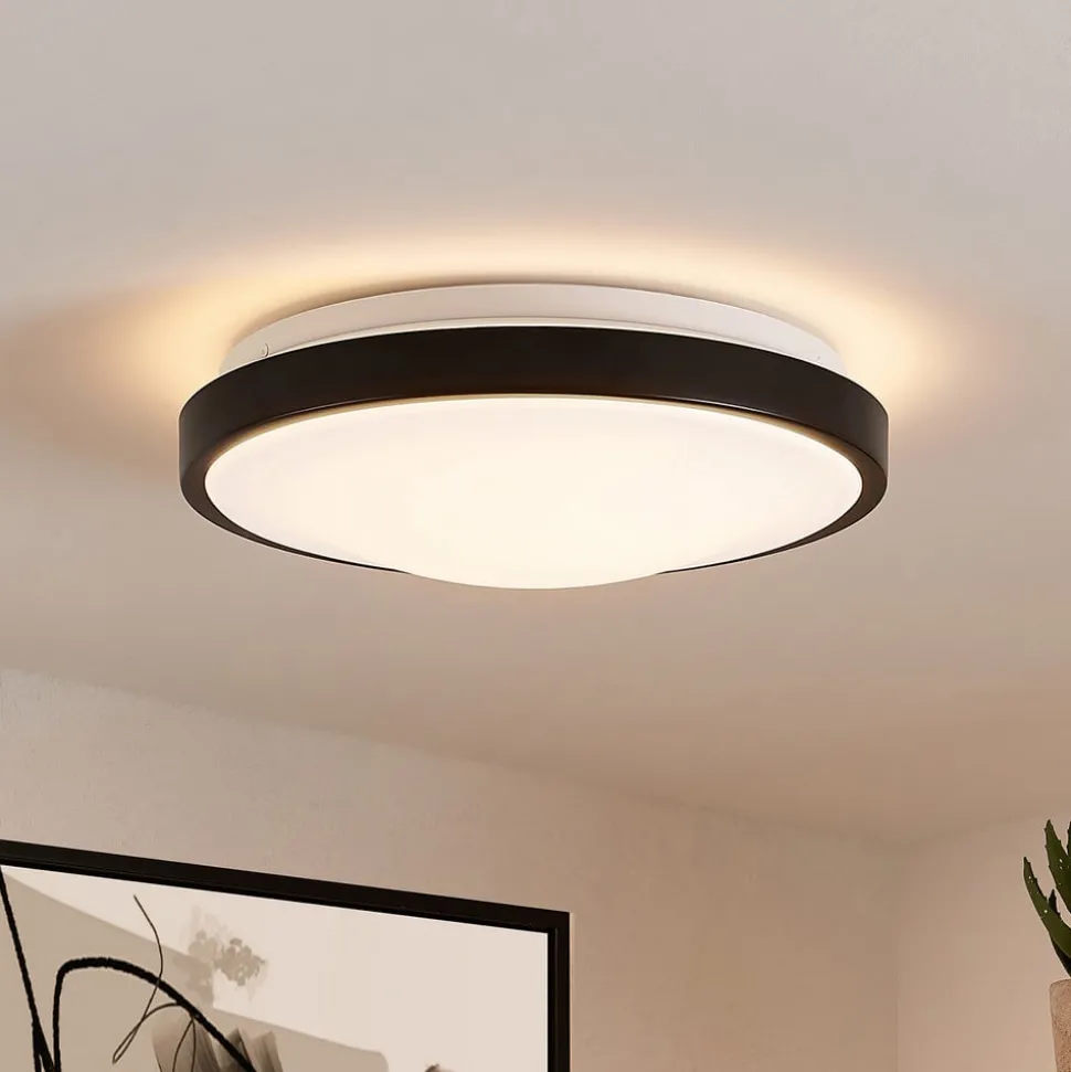 Villum ronde LED plafondlamp in zwart en wit Die LED plafondlamp Villum is een stijlvolle oplossing voor het verlichten van een studeerkamer of woonkamer. Hij is gemaakt van ijzer, aluminium en kunststof en het ronde ontwerp bestaat uit een zwart frame en een witte diffuser. Achter deze diffuser zitten permanent geïnstalleerde LED’s die een warmwit licht produceren en zo de juiste sfeer voor het interieur creëren. De slanke buitenkant van de Villum LED plafondlamp past ook perfect in ruimtes met lage plafonds en heeft een eerder onopvallend karakter. Ze past moeiteloos bij de rest van het meubilair zonder dit te overschaduwen.