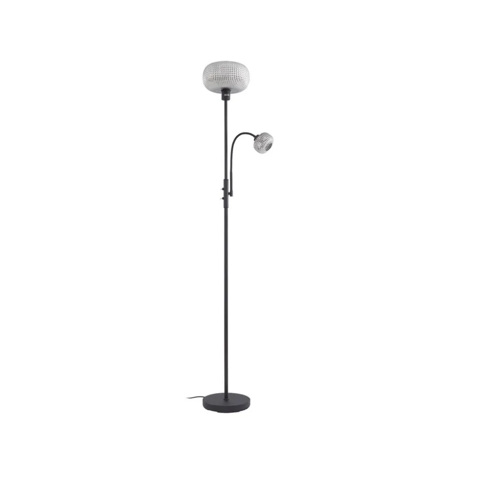 Vloerlamp Aliette – een perfecte metgezel voor woon- en eetkamers Ontdek de vloerlamp Aliette, een stijlvolle aanvulling voor elke woon- of eetkamer. Het moderne ontwerp in zwart en grijs met glazen accenten voegt een elegante touch toe aan elke kamer. Deze vloerlamp is niet alleen een visueel HighLight, maar biedt ook een geïntegreerd leeslampje dat zorgt voor gerichte verlichting. Of je nu ontspant met een boek of samen geniet van een diner, deze lamp creëert de perfecte sfeer.