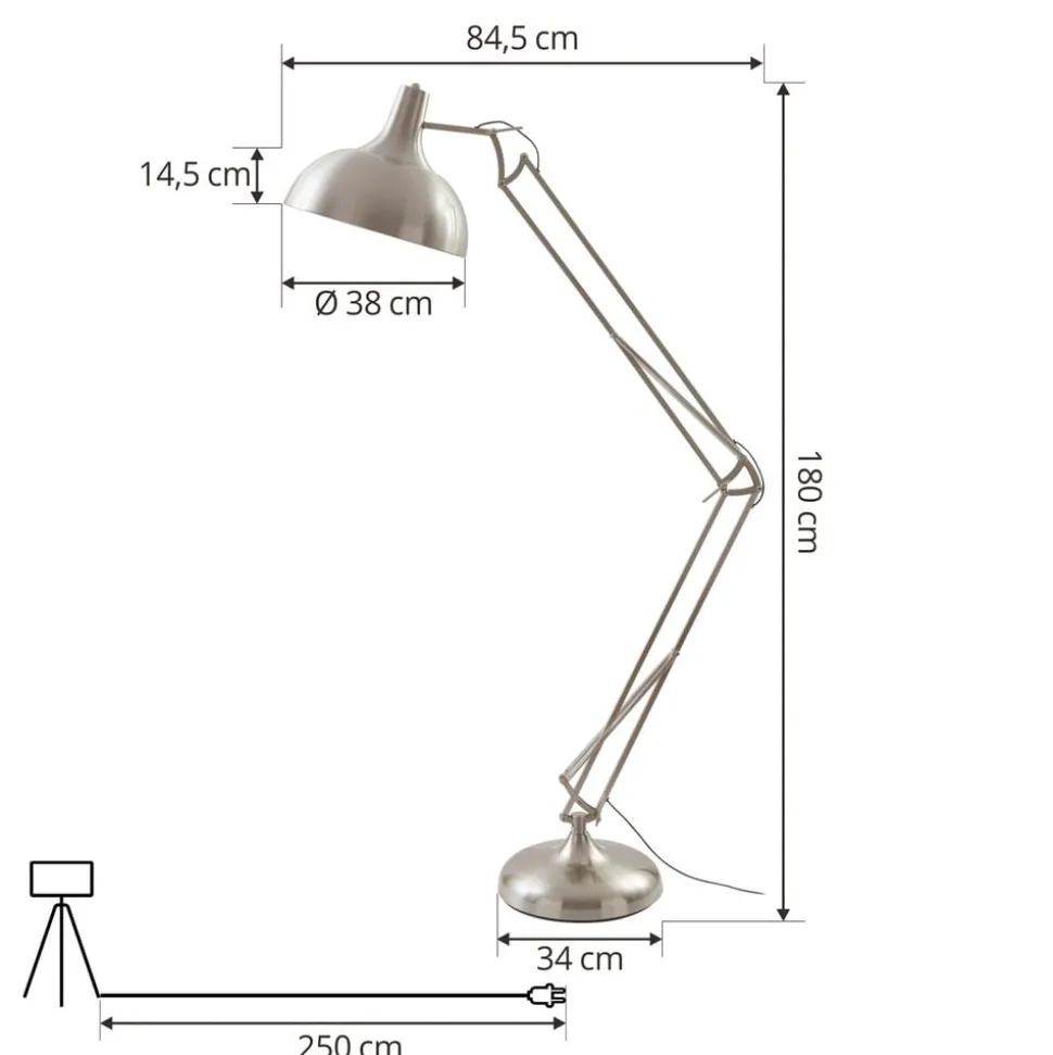 Vloerlamp Leia in zilver met verstelbare kap Deze vloerlamp brengt niet alleen licht in het donker, maar zorgt ook voor een stijlvolle afwerking van je huis. Het model Leia is uitgerust met een voetschakelaar en is gemakkelijk te bedienen. Met haar geweldige stijl past ze perfect in je woonruimte en voegt ze een modern tintje toe, dat moeiteloos harmonieert met de bestaande inrichtingsstijl. De vloerlamp is gemaakt van ijzer en heeft een zilveren afwerking. Leia heeft een E27 fitting. De kap kan flexibel gedraaid worden om het licht in de gewenste richting te sturen. Een uitstekende woonervaring en smaakvol design kenmerken deze vloerlamp van het merk Lindby