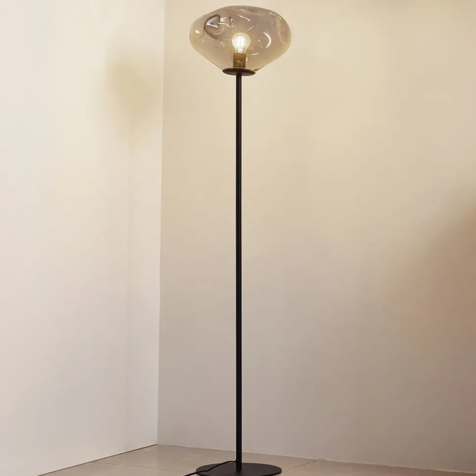 Vloerlamp Lelia – de perfecte metgezel voor interieurs van glas en ijzer Ontdek de vloerlamp Lelia, een meesterwerk van ontwerper Ingo Thiele, die indruk maakt met haar rookgrijze glazen kap en zandzwarte ijzeren accenten. Deze lamp vertegenwoordigt een harmonieuze symbiose van design en moderniteit, ideaal voor het verlichten van eetkamers en woonkamers. De hoogwaardige materialen van glas en ijzer beloven niet alleen een aantrekkelijke esthetiek, maar ook duurzaamheid. Ervaar hoe de vloerlamp Lelia een sfeer creëert die varieert van gezelligheid tot inspirerende productiviteit en tegelijkertijd op subtiele wijze de stemming in de kamer beïnvloedt.
