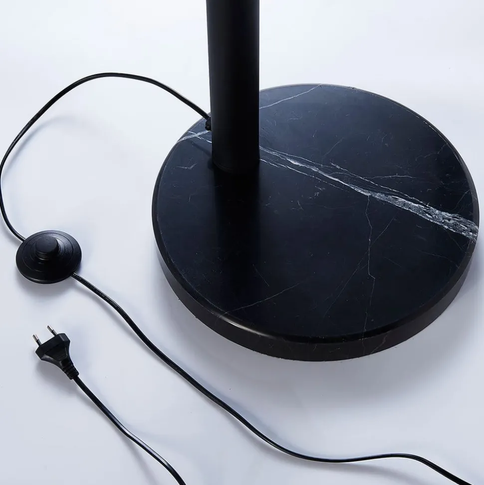 Zwart met gouden Lira vloerlamp in een licht gebogen vorm Deze vloerlamp is zeker niet zonder rustieke elementen, of in ieder geval die elementen die associaties oproepen met de vintage look, want de vorm van de kappen doet denken aan lichtbronnen die decennia geleden werden gebruikt. Vijf gebogen armen steken vanuit het midden van de vloerlamp uit een stabiele basis en leiden naar de kappen. Geïntegreerde scharnieren zorgen ervoor dat alle kappen op en neer kunnen worden gedraaid, waardoor het licht beter aan de omgeving kan worden aangepast. Net als het frame zijn de kappen aan de buitenkant zwart en aan de binnenkant bedekt met mat goudfolie, waardoor ze er elegant en warm uitzien. De Lira vloerlamp is een bijzonder aantrekkelijke en uitnodigende toevoeging aan de woonkamer, waar hij er niet alleen decoratief uitziet, maar ook kan worden gebruikt om te lezen. De lamp wordt bediend via een voetschakelaar in de voedingskabel.