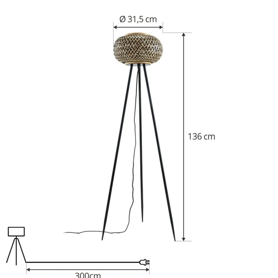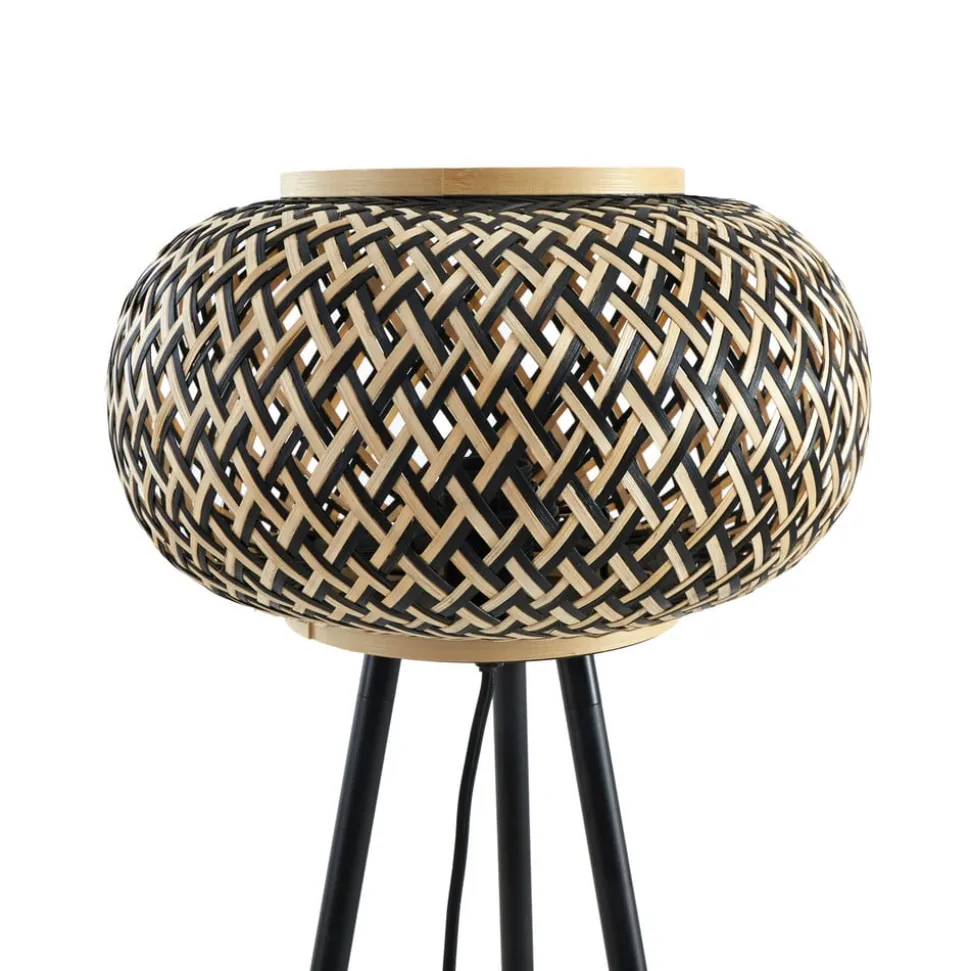 Lindby vloerlamp Nerys, zwart, bamboe, Ø 31,5 cm, driepoot