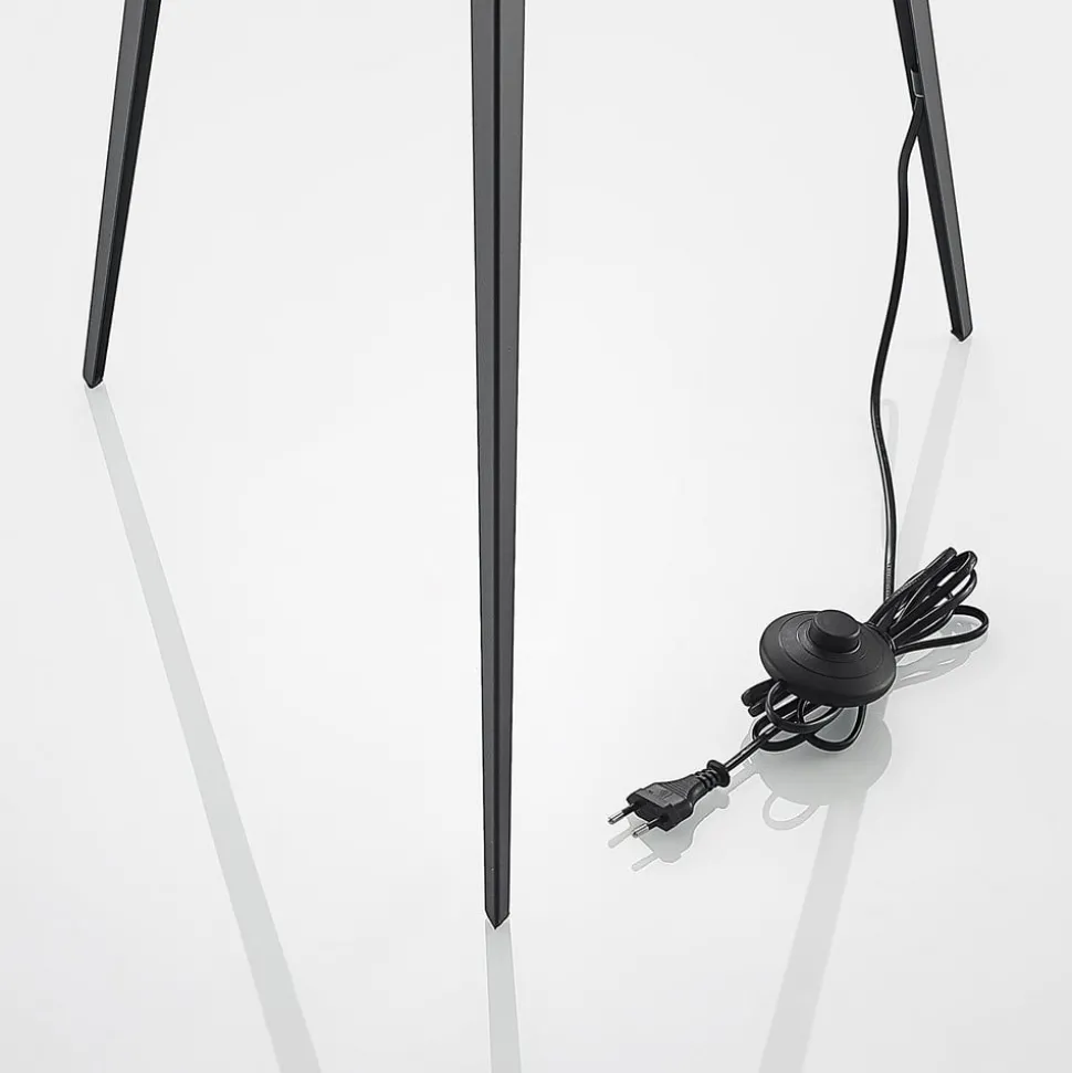 Lindby vloerlamp Thoralf, driepoot, zwart, textiel, Ø50cm