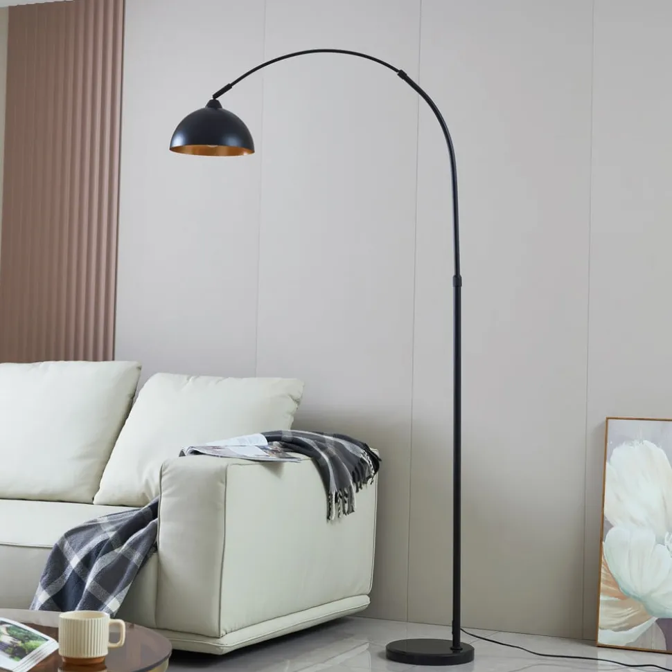 Lindby vloerlamp Tonka, zwart/goud, metaal, Ø 25 cm