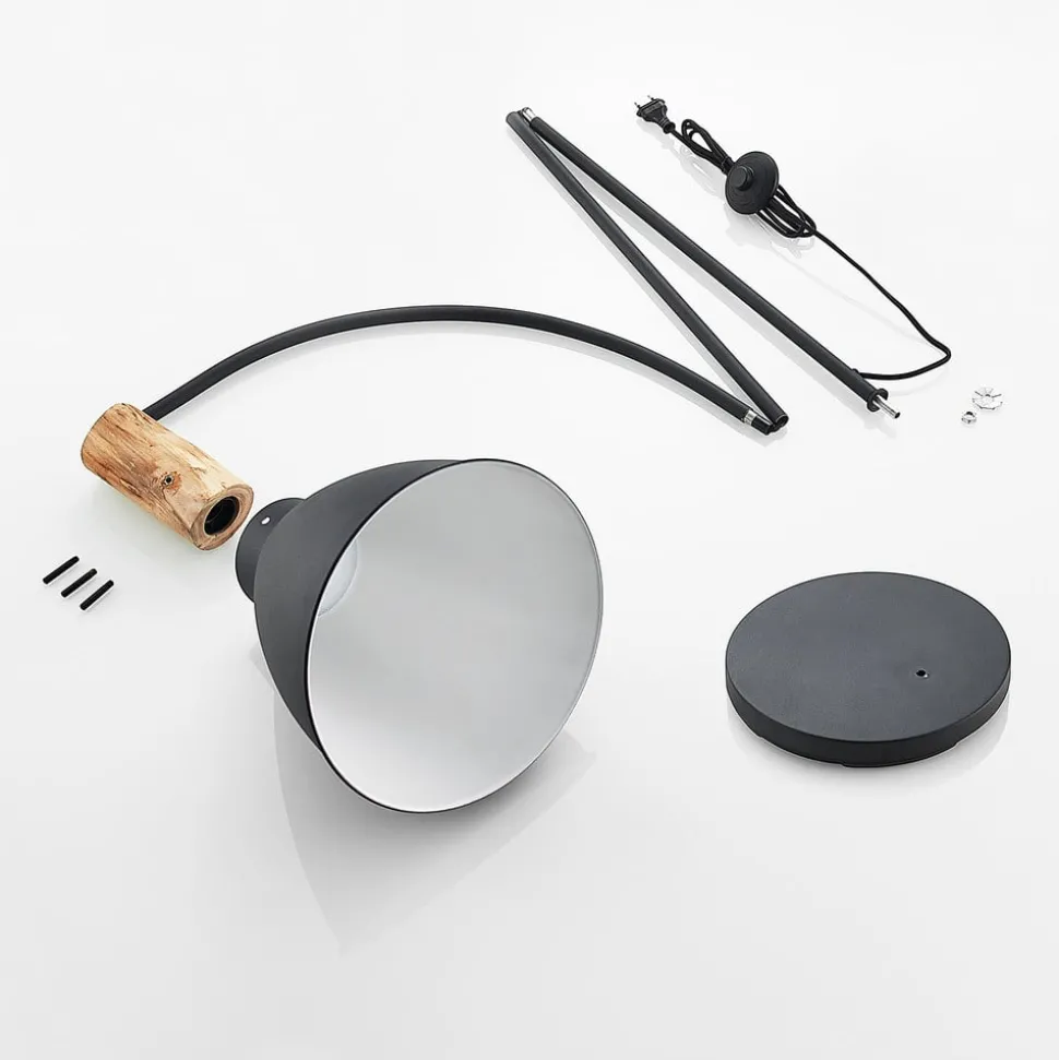 Lindby vloerlamp Trebale, zwart, hout, 154 cm, E27