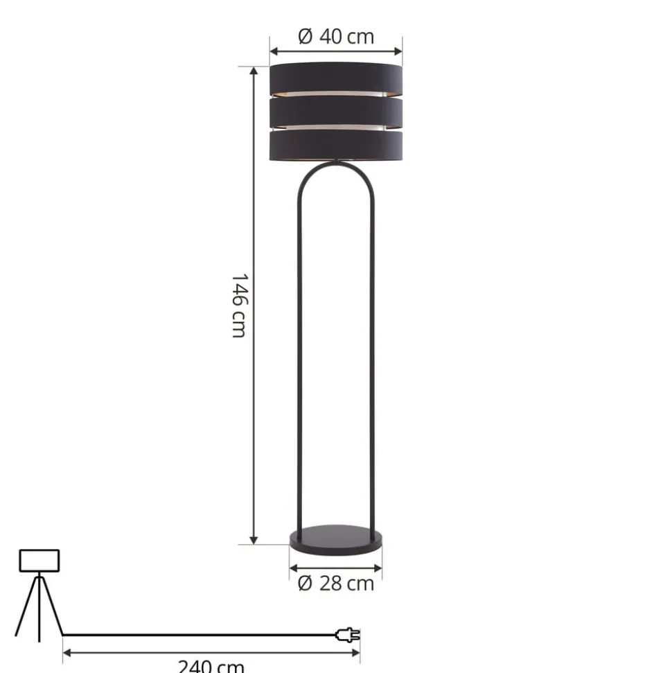 Lindby vloerlamp Tsomo, Ø 40 cm, zwart, stof, E27