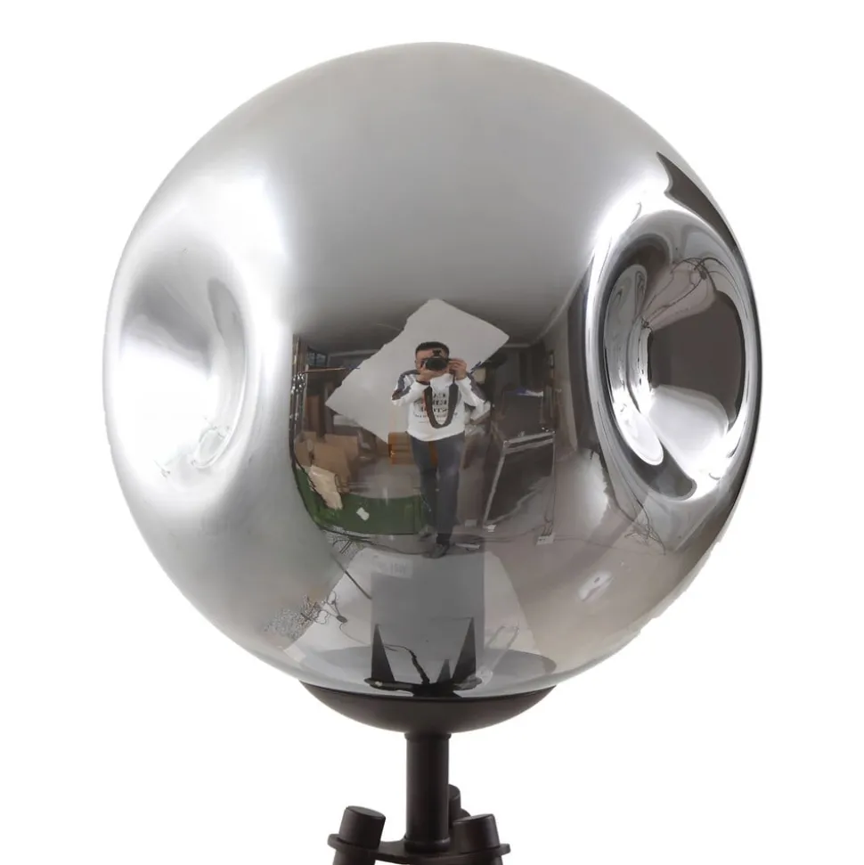 Vloerlamp Valentina met glazen kap in rookgrijs Valentina is een moderne vloerlamp bestaande uit een bruin ijzeren frame en een rookgrijze glazen kap. De kap is niet helemaal rond en heeft een holle vorm. Hij heeft decoratieve inkepingen, waardoor hij zelfs in uitgeschakelde toestand een bijzondere blikvanger is. Het licht wordt rondom uitgestraald en creëert een gezellige sfeer. Omdat de lichtbron in het volle zicht staat, is het gebruik van een decoratieve lamp ideaal. Valentina wordt in- en uitgeschakeld met een voetschakelaar. De vloerlamp kan bijvoorbeeld worden gebruikt als lichtbron in de woonkamer.
