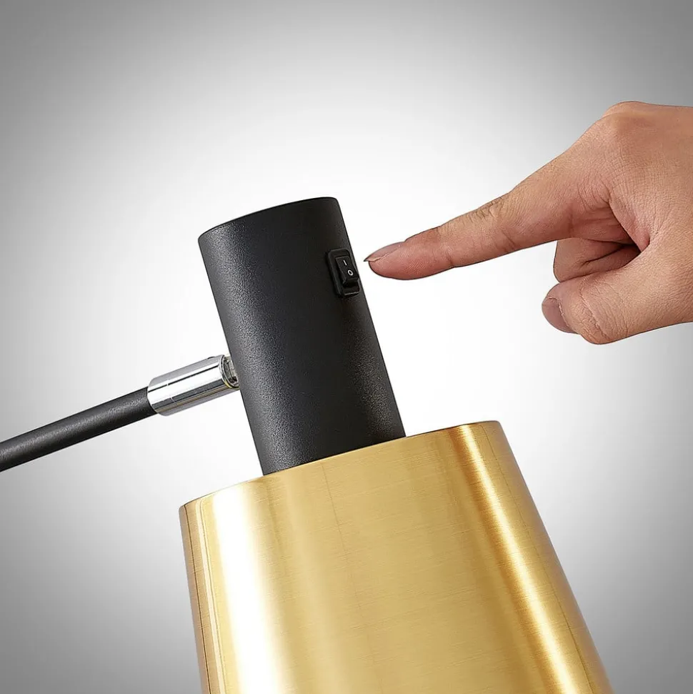 Lindby vloerlamp Vlada, 144 cm, messing, zwart, metaal