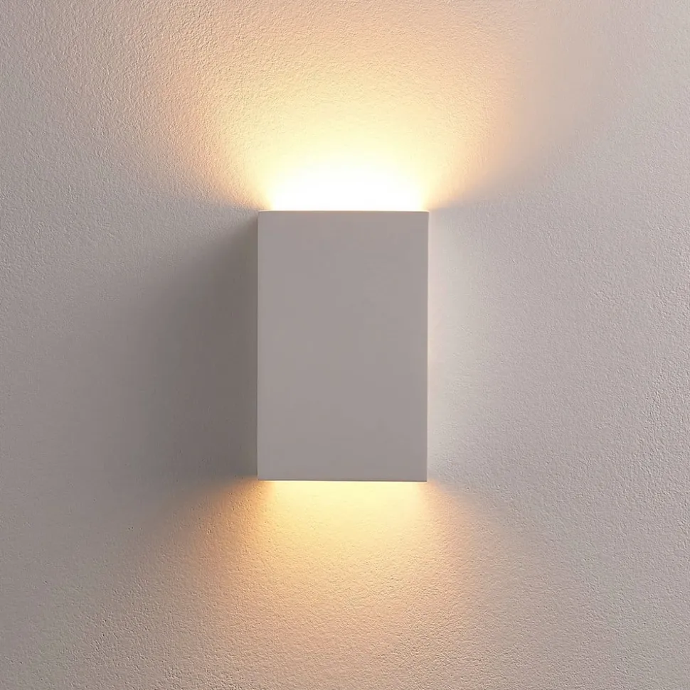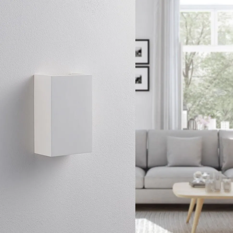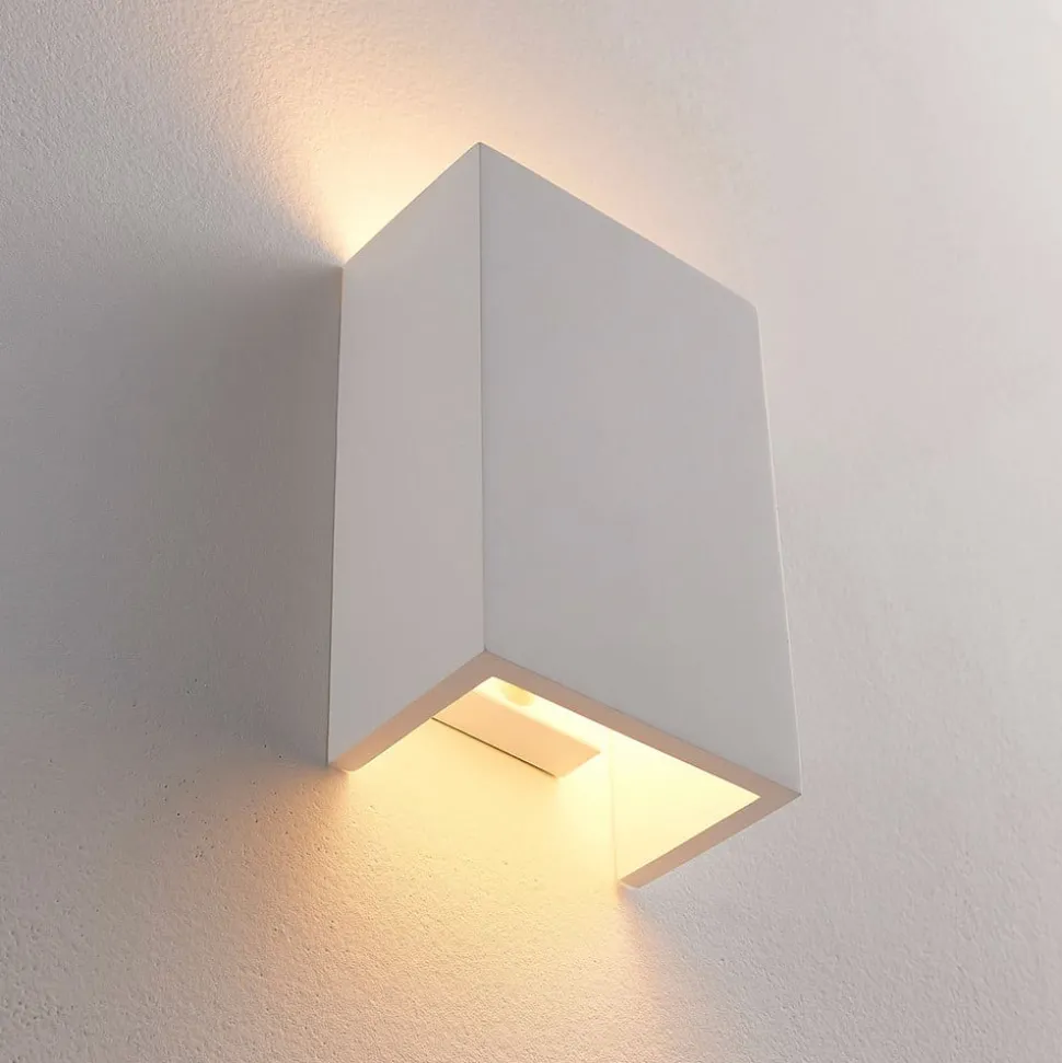 Lindby wandlamp Colja, hoekig, hoogte 16 cm, gips, wit