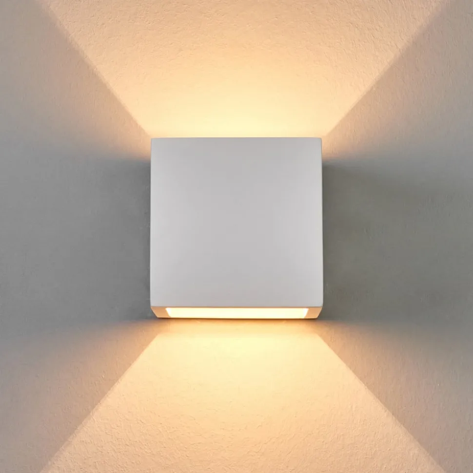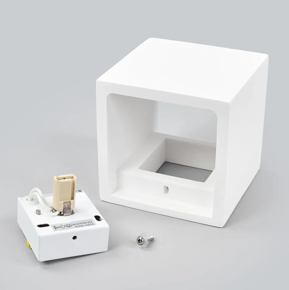Freja beschilderbare wandlamp van wandlamp in kubusvorm Vaak is het zo dat je een bepaalde muurkleur hebt gekozen en de verlichting in een bijpassende kleur wilt uitvoeren, maar gewoon niet kunt vinden wat je zoekt en daarom terugvalt op eenvoudige en tijdloze kleuren zoals wit en zilver. Natuurlijk is er niets mis met deze optie, die ingetogen elegantie en langdurig plezier belooft – deze wandlamp is ook een uitstekende keuze. Het feit dat ze gemaakt is van gips opent echter volledig nieuwe mogelijkheden, omdat ze rechtstreeks in de gewenste kleur kan worden geschilderd en zo perfect integreert in het bestaande ruimteconcept. Natuurlijk is dezelfde kleur niet de enige ontwerpoptie; integendeel, de armatuur kan ook worden geverfd zodat hij afsteekt tegen de rest van de kamer en een prachtige blikvanger is, of hij nu effen is of veelkleurig met een speciaal motief – er zijn hier zeker geen grenzen aan de creativiteit!