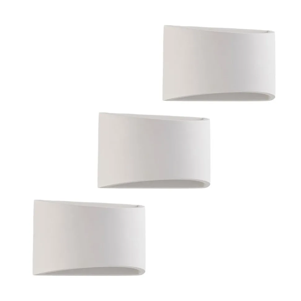 Heiko – wandlamp in wit gips in een praktisch 3-pak Deze wandlamp straalt op een effectieve en vooral gezellige manier licht naar boven en beneden uit. De armatuur zelf heeft een halfronde vorm, die als aantrekkelijk wordt ervaren en met verschillende stijlen kan worden gecombineerd. Als je de kleur van de wandlamp wilt aanpassen, kun je gerust een kwast ter hand nemen, want gipsen armaturen zijn heel gemakkelijk over te schilderen. Heiko is hier verkrijgbaar als set van 3.