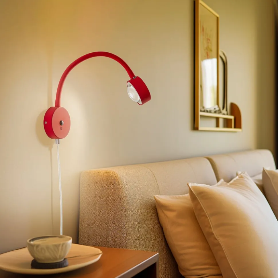 Jyla wandlamp met flexibele arm en geïntegreerde dimmer De Jyla wandlamp heeft een stekker zodat hij flexibel in de woonruimte kan worden geplaatst. Het enige wat je nodig hebt is een stopcontact in de buurt. Bijzonder praktisch is de geïntegreerde flexibele arm, waarmee de richting van het warmwitte licht in een handomdraai kan worden aangepast aan persoonlijke wensen. Jyla is ideaal als lichtbron voor kantoor, woonkamer of slaapkamer. Met zijn moderne rode kleur is de wandlamp een bijzondere blikvanger in veel omgevingen, en de geïntegreerde schakelaar op de wandhouder maakt het mogelijk om het licht gewoon aan en uit te doen. Dankzij de 3-staps dimtechnologie met geïntegreerde uit-functie kan de lamp ook tot drie verschillende helderheidsniveaus worden gedimd door meerdere keren op de schakelaar te drukken: 100%, 50% en 25%. De meegeleverde GX53 lamp heeft een gebogen lens en ziet er daardoor uit als een glazen halve bol.