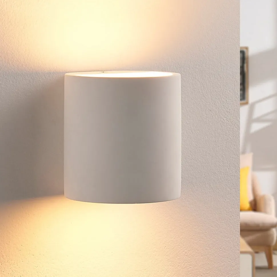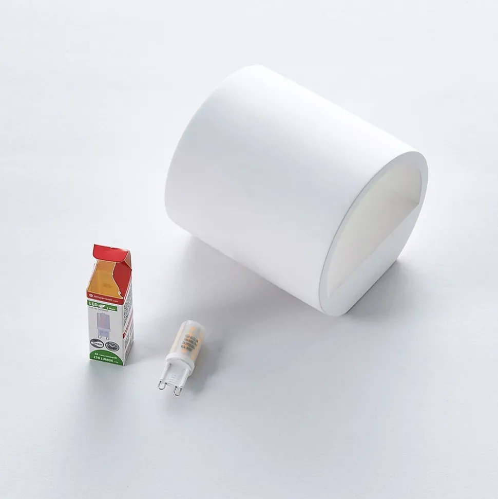 Lindby wandlamp Krista, wit, gips, omhoog/omlaag, overschilderbaar, G9