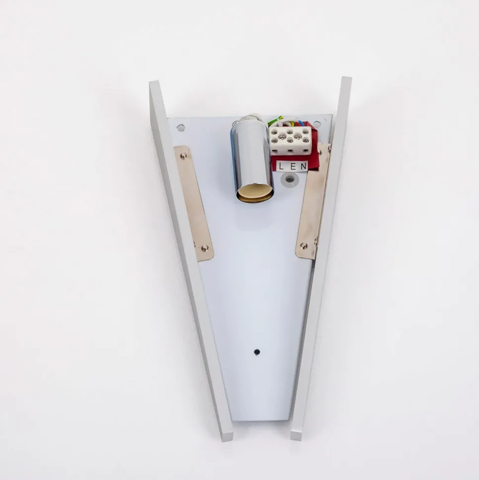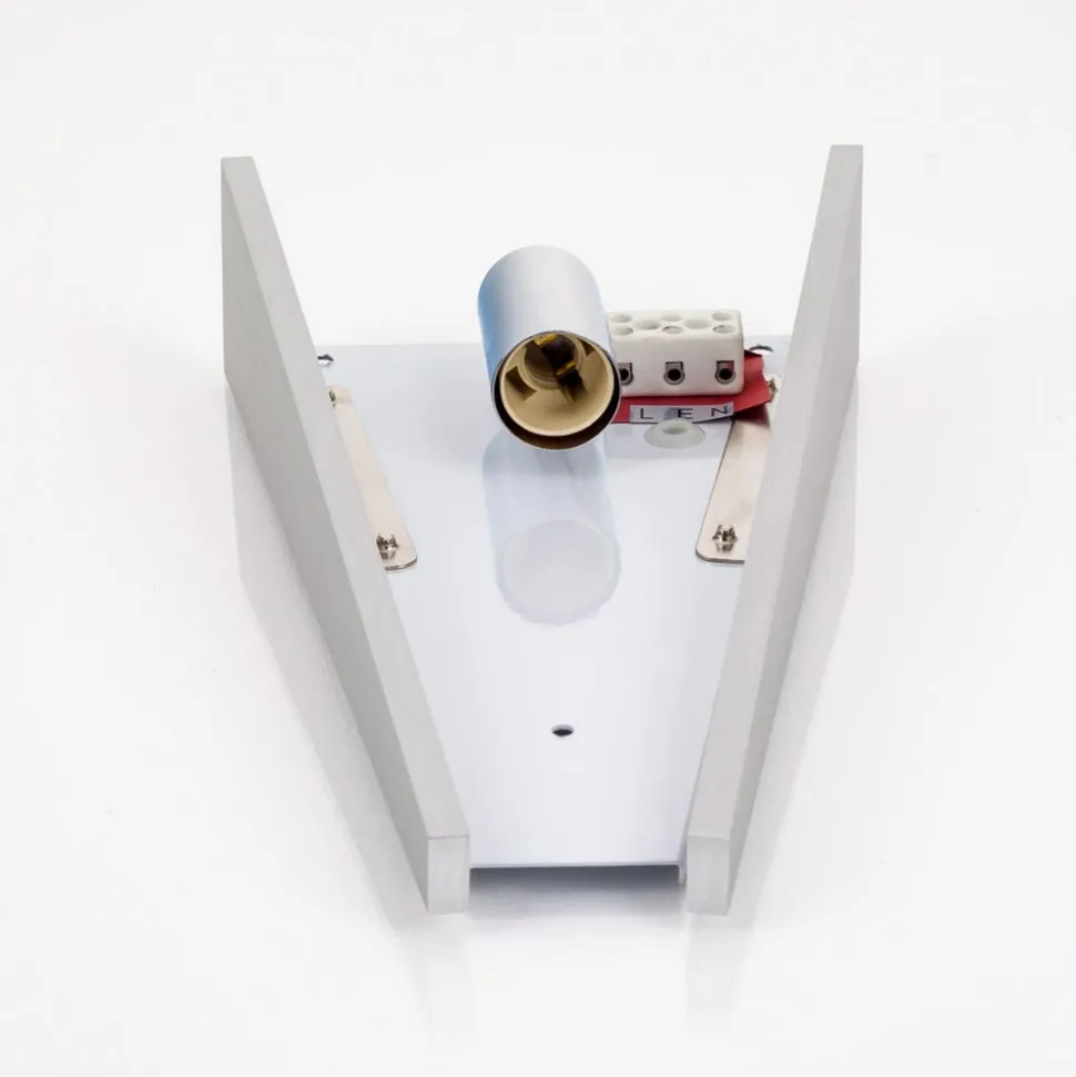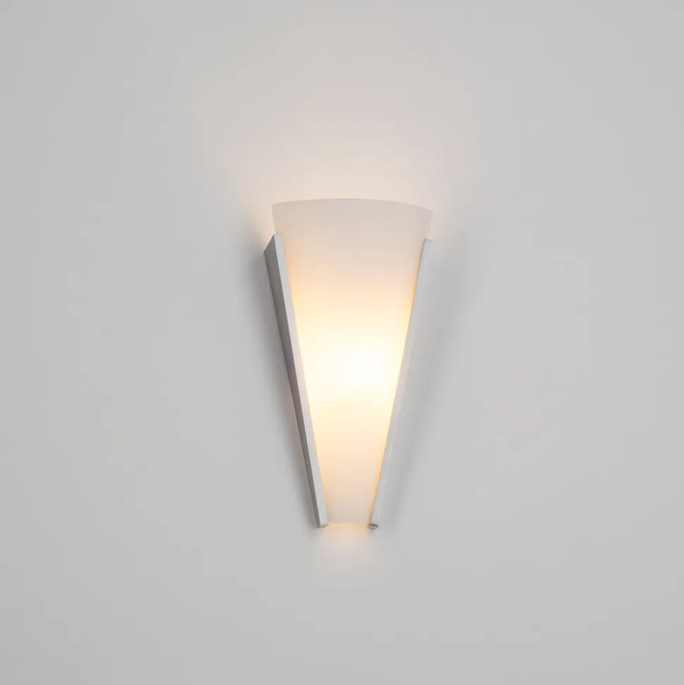 Wandlamp Magnus van glas en aluminium Deze wandlamp maakt indruk met haar zeer aantrekkelijke uiterlijk: de glazen kap wordt naar boven toe breder en wordt aan de zijkanten aangevuld door twee aluminium elementen met een geborsteld oppervlak. Aan de muur gemonteerd ziet Magnus er daarom zeer elegant en natuurlijk uiterst modern uit. Het gesatineerde glazen inzetstuk zorgt voor een zachte en warme lichtspreiding en dankzij de E14 fitting zijn er vrijwel geen grenzen aan de keuze van de lamp.