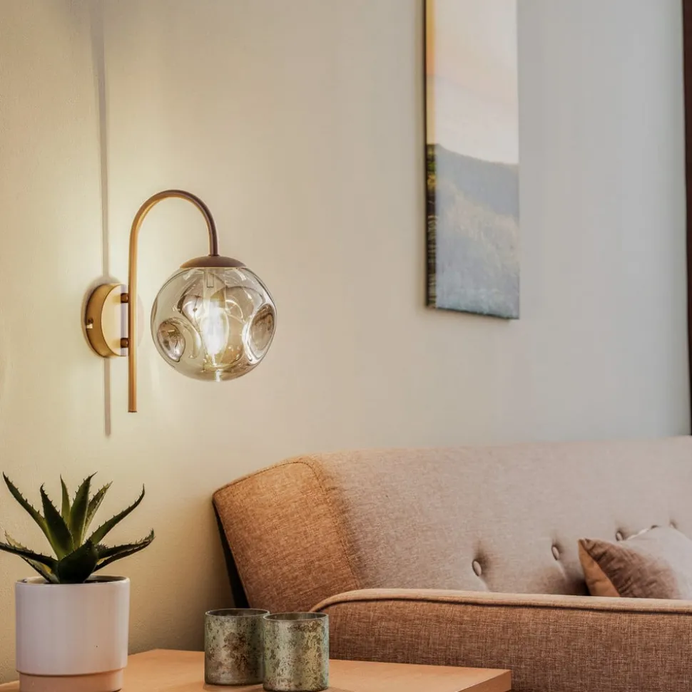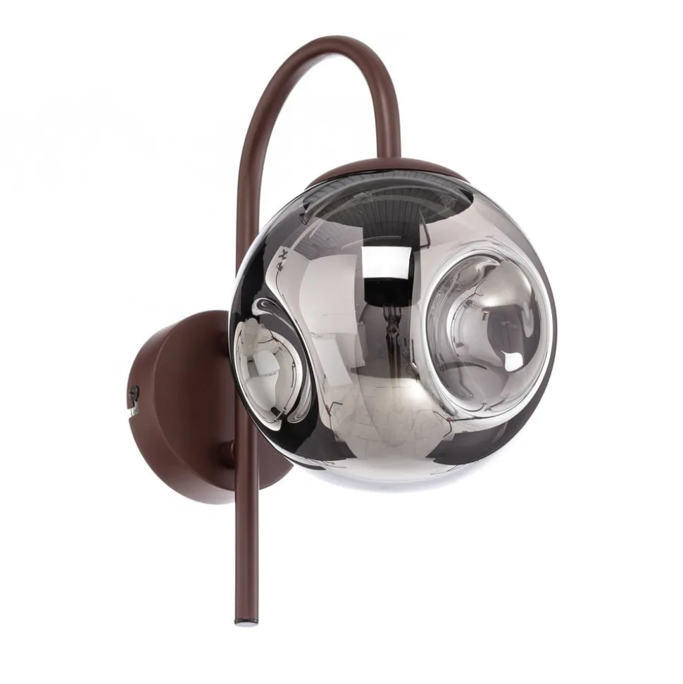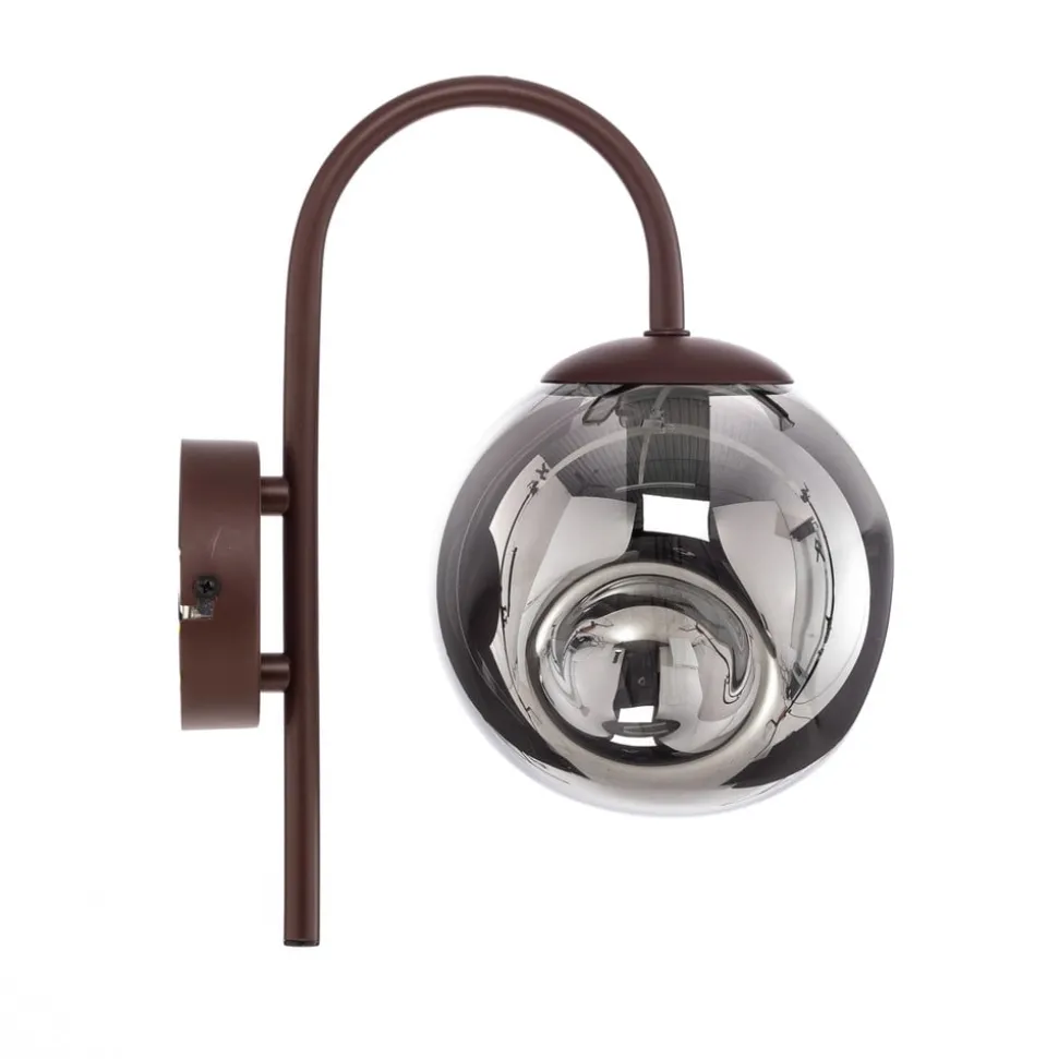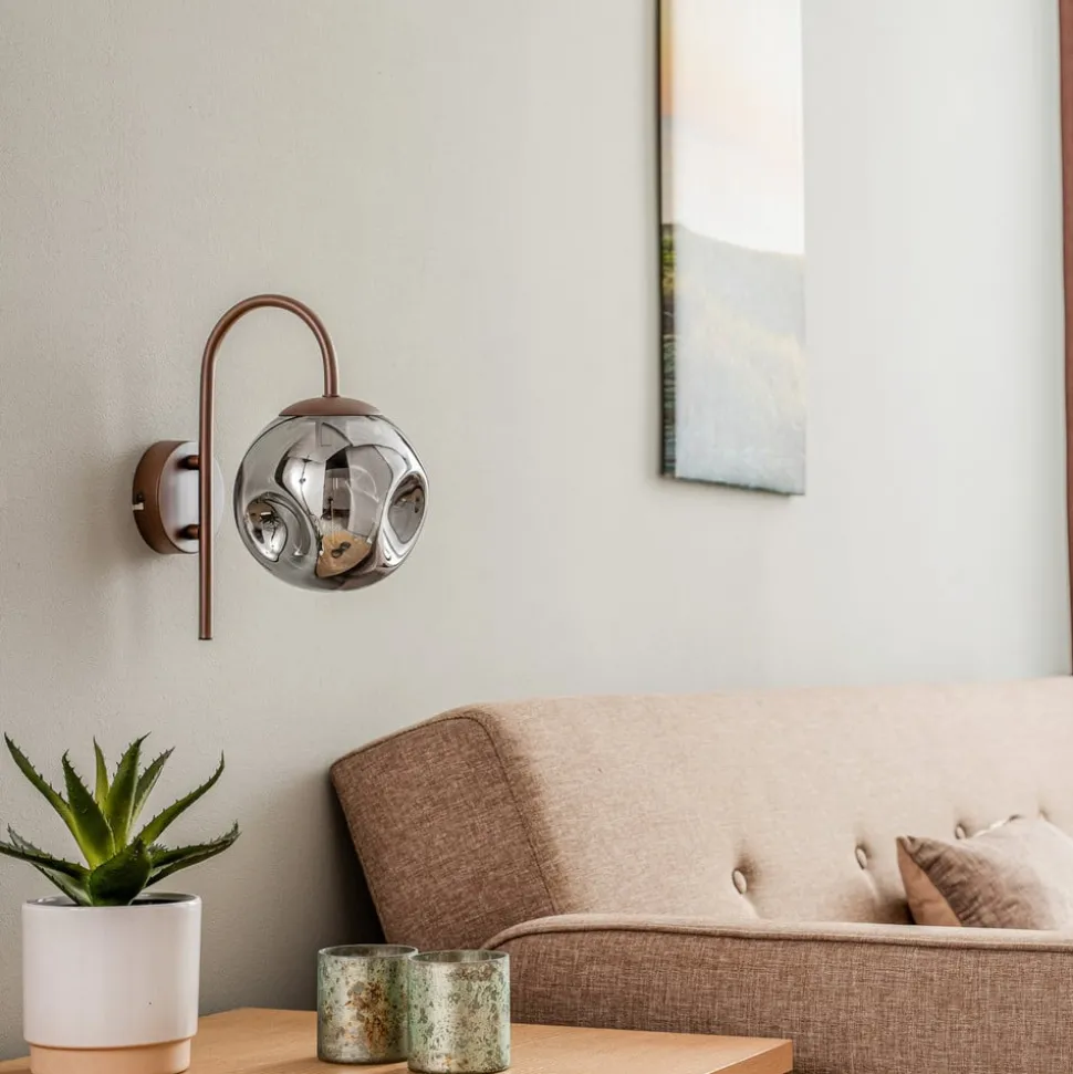 Wandlamp Valentina met holle glazen kap De wandlamp Valentina maakt indruk met haar moderne look en subtiele kleurstelling, waardoor ze moeiteloos in verschillende woonruimtes past. Ze is bijvoorbeeld geschikt als lichtbron voor de gang, woonkamer of eetkamer. Het frame van de wandlamp is gemaakt van bruin ijzer, terwijl de rookgrijze kap van glas is. Deze heeft een holle vorm met decoratieve inkepingen. Decoratieve lichtbronnen zijn bijzonder geschikt voor verlichting.