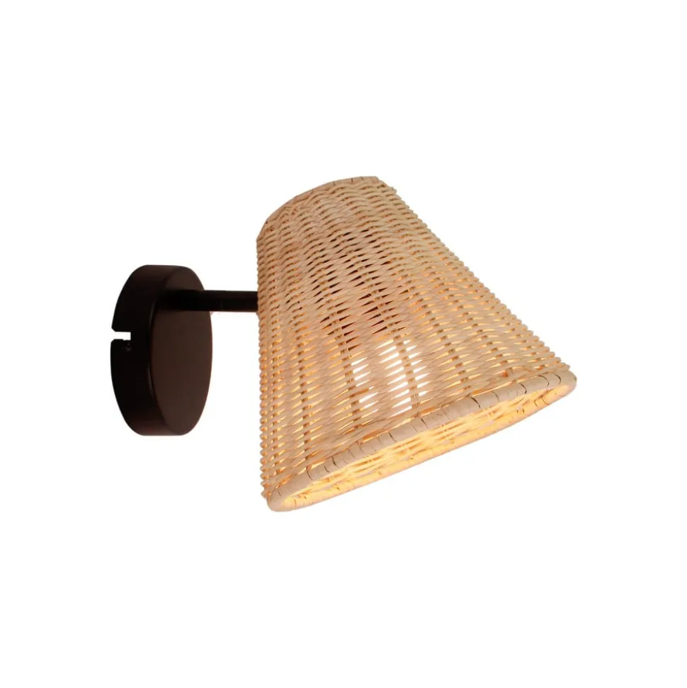 Lindby wandlamp Zyralia, houtkleurig, rotan, 19,5 cm hoog