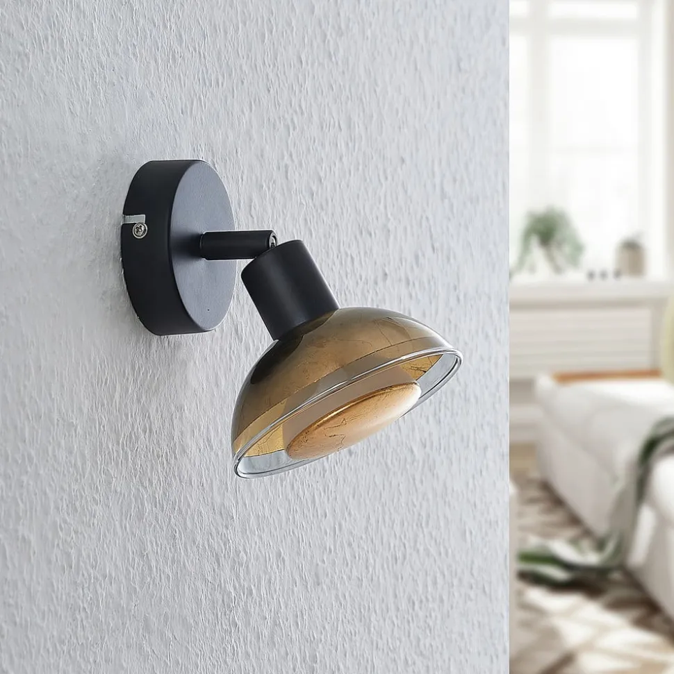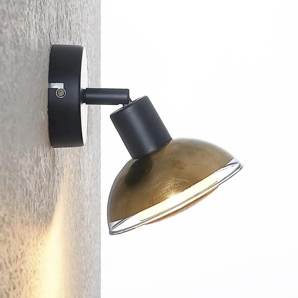 Lindby wandspot Erin, zwart/goud, Ø 12 cm, glas