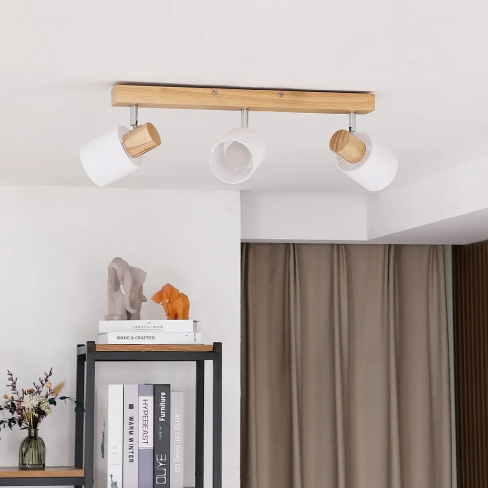 Wanessa houten plafondspot met drie beweegbare kappen De Wanessa plafondspot, die gemaakt is van hout en voorzien is van drie witte stoffen kappen, straalt zelfs in uitgeschakelde toestand een aangename warmte uit. Het natuurlijke materiaal ziet er hier zeer aantrekkelijk uit en is vakkundig gecombineerd met kleine, beweegbare kappen. De plafondspot heeft er drie, die in verschillende richtingen gedraaid kunnen worden, afhankelijk van de kamer en de situatie. Dit wordt mogelijk gemaakt door de kleine scharnieren, die in glanzend chroom zijn uitgevoerd en een extra visueel onderdeel van het ontwerp vormen. De Wanessa plafondlamp kan op verschillende manieren worden gebruikt in verschillende woonruimtes, of het nu in de woonkamer, hal of slaapkamer is.