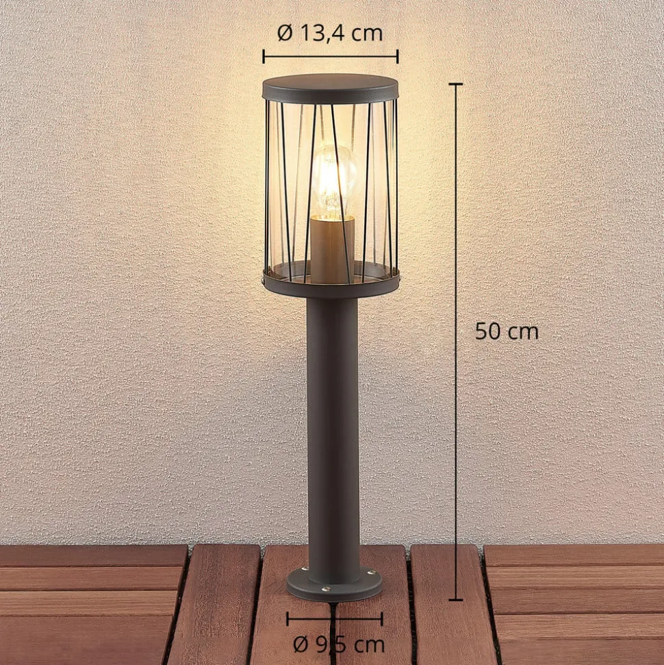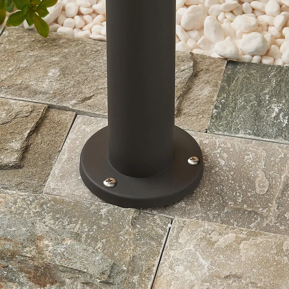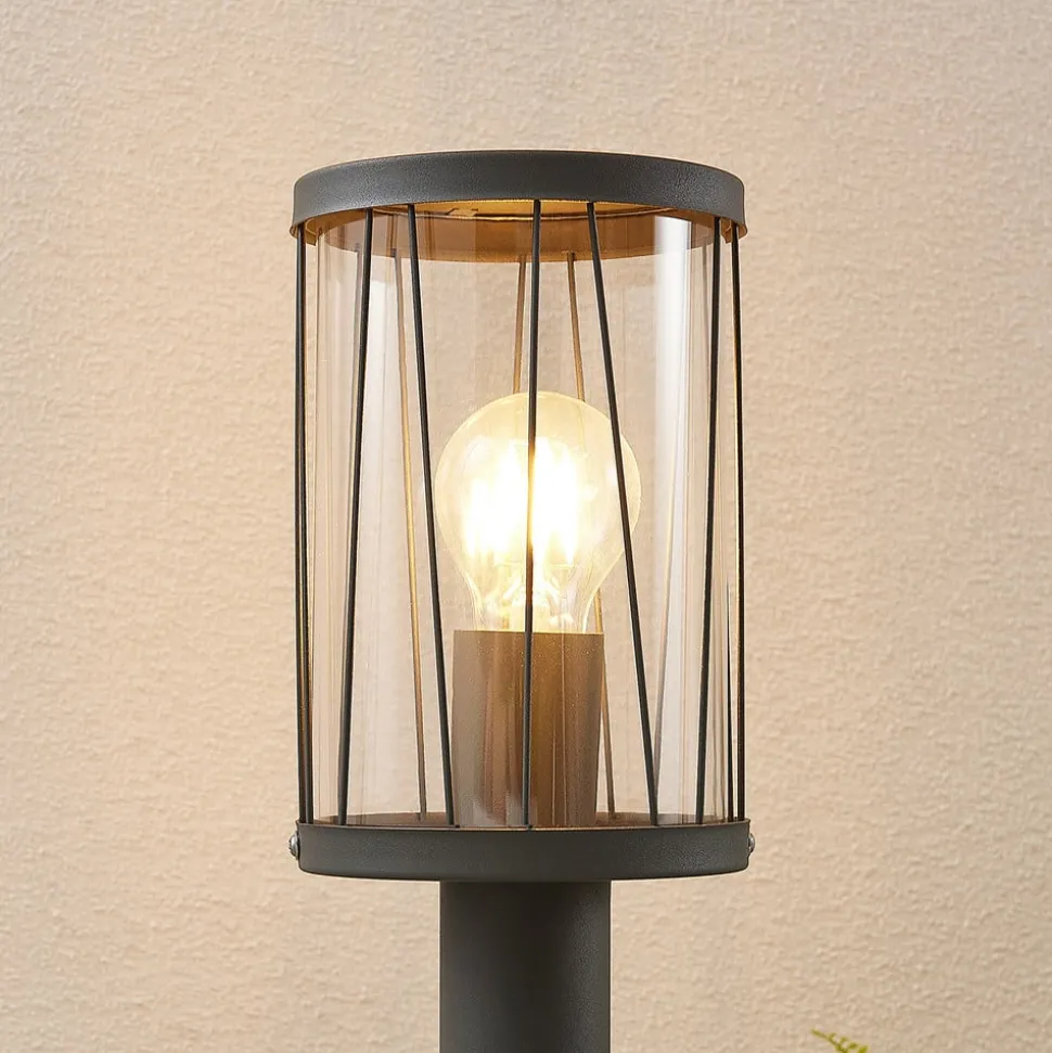 Ronde sokkellamp Yonan als stijlvolle aanvulling op moderne woonomgevingen Yonan is bijzonder geschikt voor eigentijds design rond het huis en op het erf. De sokkellamp heeft een ronde basisvorm en is een lichtbron met een donkergrijze roestvrijstalen behuizing, waarvan de kap wordt gecompleteerd door een helder polycarbonaat inzetstuk. Je herkent ook de smalle, schuine staven rond de kap, die een bijzonder stijlvol en elegant decoratief accent toevoegen. De E27 lamp blijft echter altijd duidelijk zichtbaar en is een herkenbaar onderdeel van de algehele look, daarom passen filament of rustieke lampen bijzonder goed bij het ontwerp van de buitenlamp.