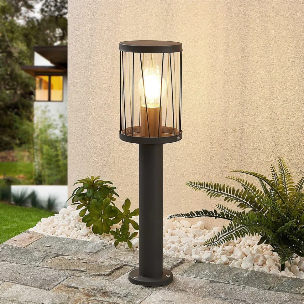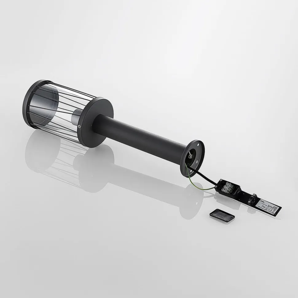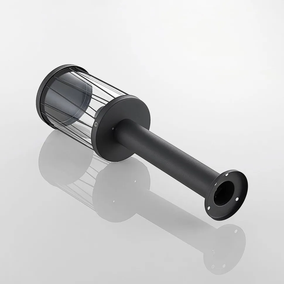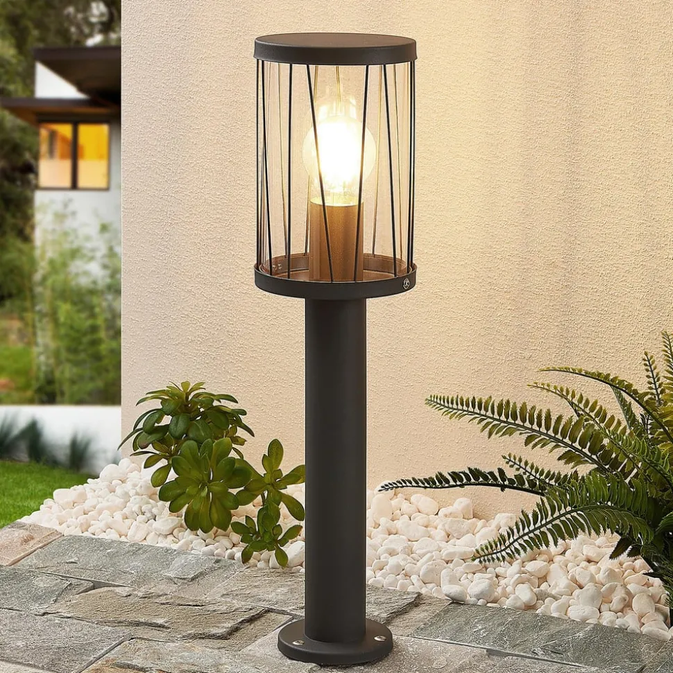 Ronde sokkellamp Yonan als stijlvolle aanvulling op moderne woonomgevingen Yonan is bijzonder geschikt voor eigentijds design rond het huis en op het erf. De sokkellamp heeft een ronde basisvorm en is een lichtbron met een donkergrijze roestvrijstalen behuizing, waarvan de kap wordt gecompleteerd door een helder polycarbonaat inzetstuk. Je herkent ook de smalle, schuine staven rond de kap, die een bijzonder stijlvol en elegant decoratief accent toevoegen. De E27 lamp blijft echter altijd duidelijk zichtbaar en is een herkenbaar onderdeel van de algehele look, daarom passen filament of rustieke lampen bijzonder goed bij het ontwerp van de buitenlamp.