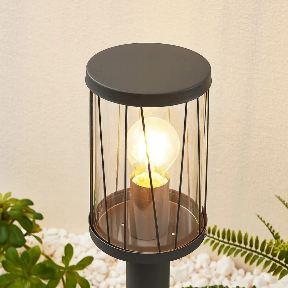 Lindby Yonan sokkellamp, rond, donkergrijs, E27