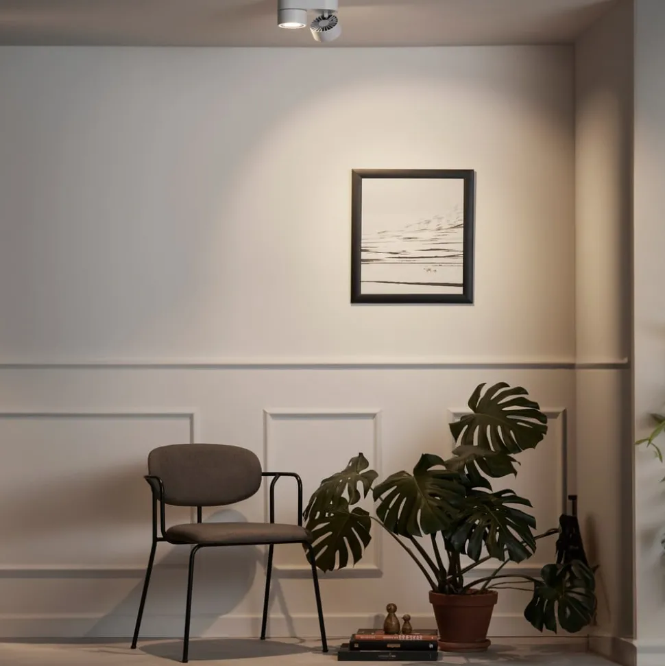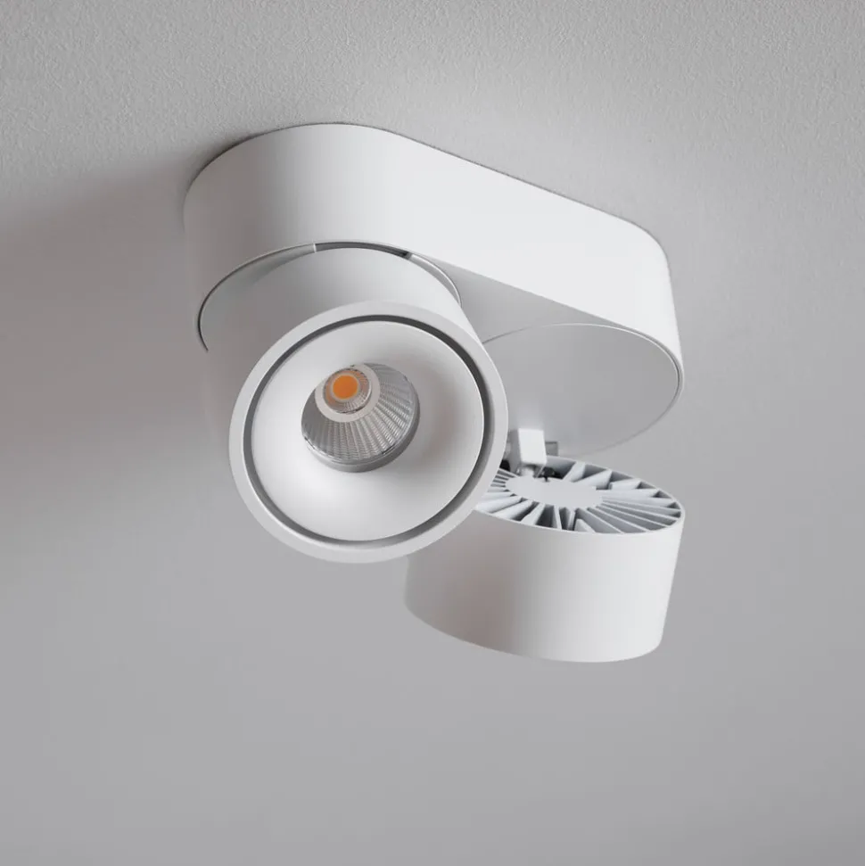 LED plafondspot Aim met twee verstelbare lampenkoppen Veelzijdig, met hoogwaardig licht en uiterst flexibel – de 2-lamps opbouwspot Aim is geschikt voor bijna elke toepassing in zowel privé- als openbare/commerciële binnenruimtes. De plafondspot is gemaakt van aluminium en uitgerust met twee individueel verstelbare koppen. Das warmwitte, dimbare licht met goede kleurweergave kan zo gemakkelijk naar de gewenste ruimte worden gericht – goede kleurweergave: Cri Cri > 90 – 350° draaibaar, 90° zwenkbaar – extern dimbaar (faseafsnijdingsregeling)