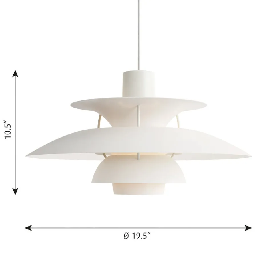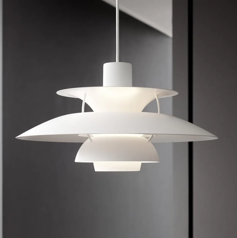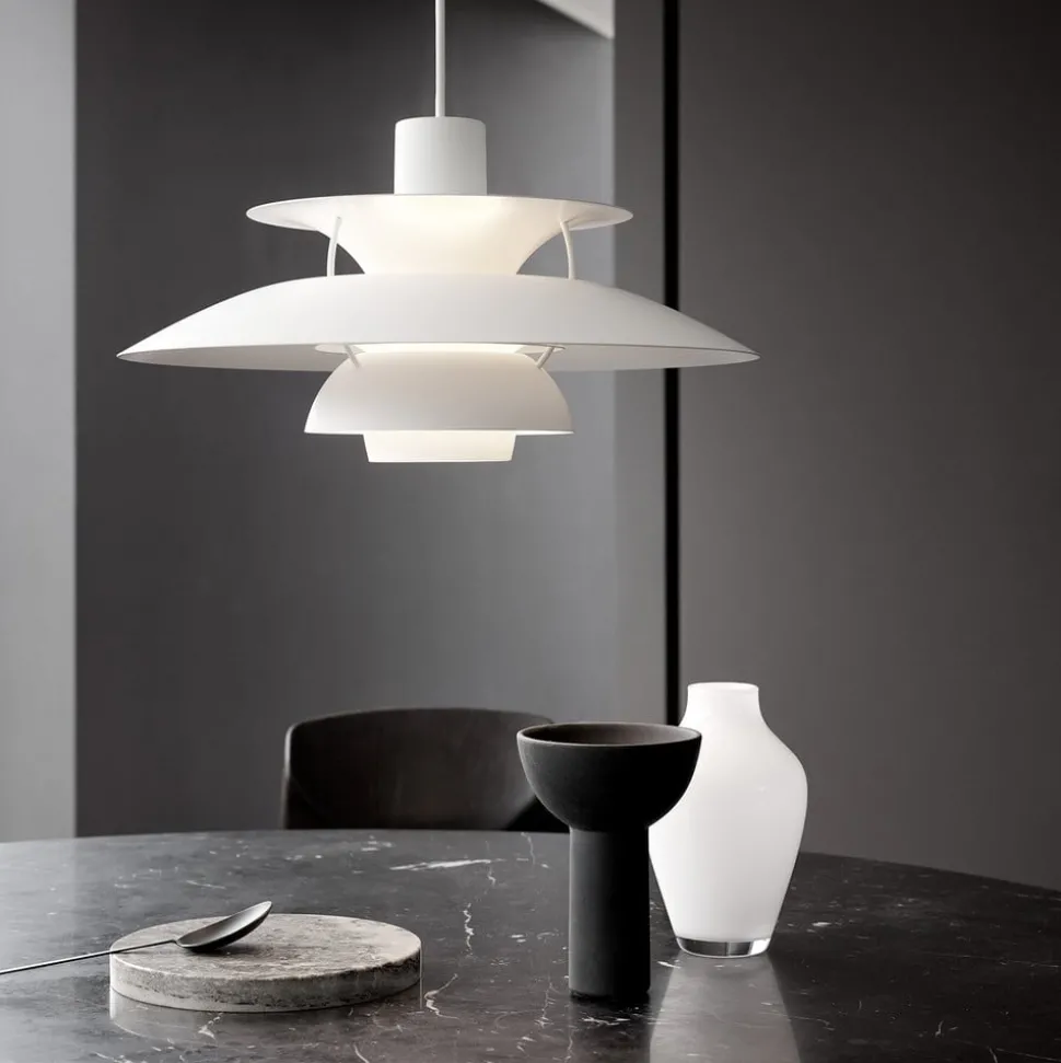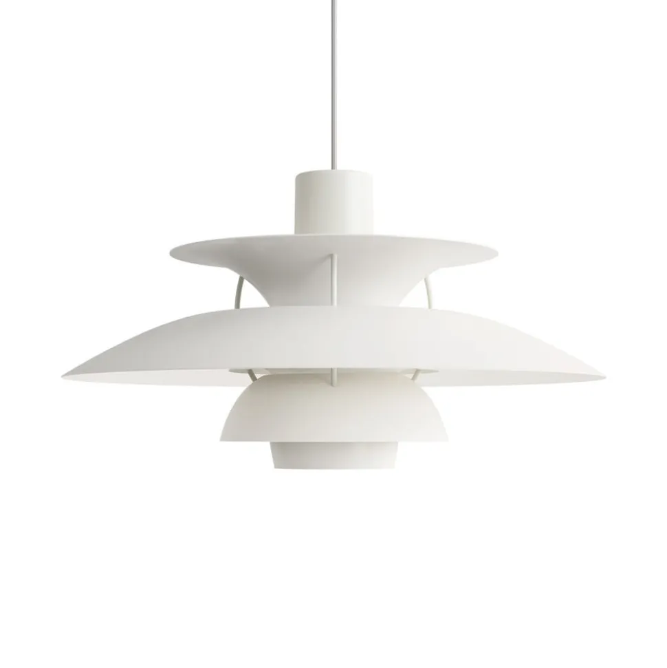 De PH 5 hanglamp is in 1958 ontworpen door de Deense ontwerper Poul Henningsen. Hij reageerde dus op de voortdurend veranderende vormen en maten van gloeilampen. Het heeft zijn naam te danken aan de grootte van de hoofdtint, die een diameter van 50 cm heeft. De ontwerper leefde van 1894 tot 1967 en creëerde talrijke designlampen voor het traditionele Deense bedrijf Louis Poulsen, dat al meer dan 100 jaar designlampen produceert.