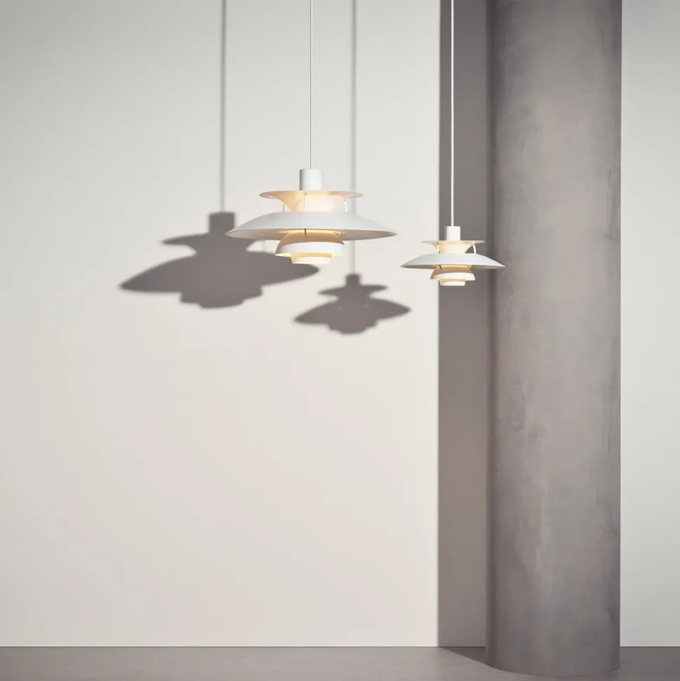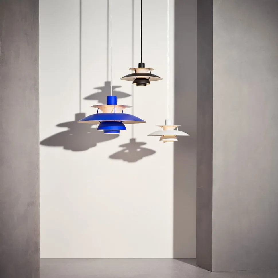 Het klassiek opvallende design van de beroemde PH 5 pendelarmatuur wordt aangevuld met de monochrome kleuren en de matte gelakte tinten met een eigentijdse uitstraling. Dankzij het interessante drieschaduwsysteem reflecteert het licht zichzelf steeds opnieuw. Het grootste deel van het geproduceerde licht wordt naar beneden uitgestraald, de emissie is volledig niet-verblindend en dompelt de ruimte onder in een gezellige sfeer. De zijdelingse lichtstralen zorgen ervoor dat de hele ruimte discreet wordt verlicht en dat de armatuur zelf ook begint te schijnen.