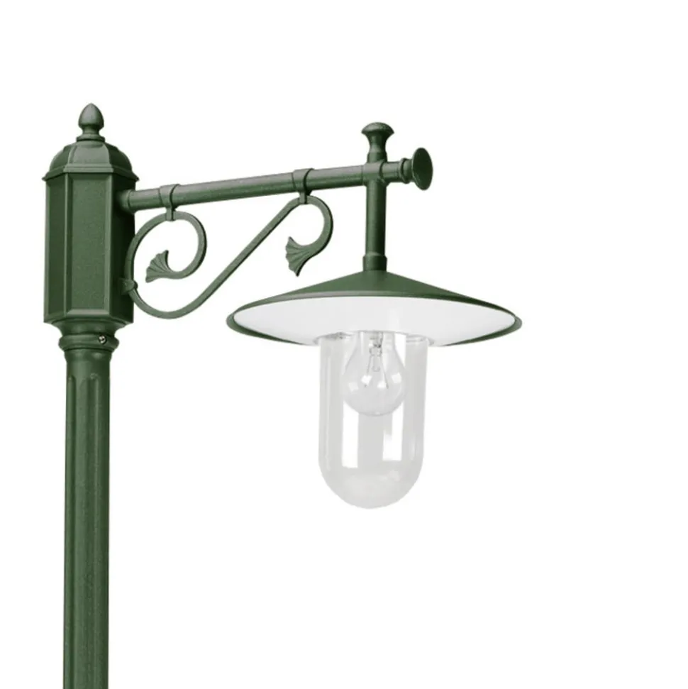 Ondanks haar tijdloze verschijning werd bij deze lamp de aandacht gelegd op een decoratieve toets. Het artistiek gebogen metaal wordt hier een echte blikvanger. De grote glazen lampenkap zorgt voor een aangename verlichting. Het donkere metaal harmonieert hierbij zeer goed met het glas en maakt de lamp erg veelvuldig bruikbaar.