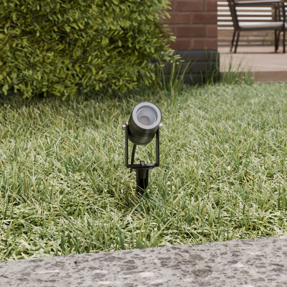 Donkergrijze buitenspot Galina met grondspies en draaibare lampenkop De buitenspot Galina met grondspies kan flexibel rond het huis worden gebruikt en verlicht de gewenste zones bijzonder gericht. Een ander voordeel is dat de lampenkop zwenkbaar is en dus perfect kan worden afgesteld. Met zijn heldere en moderne design is de Galina buitenspot rond en lichtjes langwerpig. De buitenbehuizing is gemaakt van donkergrijs aluminium. Aan de voorkant spot de lamp omringd door gehard glas. Deze materialen maken de buitenlamp bijzonder weerbestendig – Slagvastheid IK06 – Met 3 m steekkabel