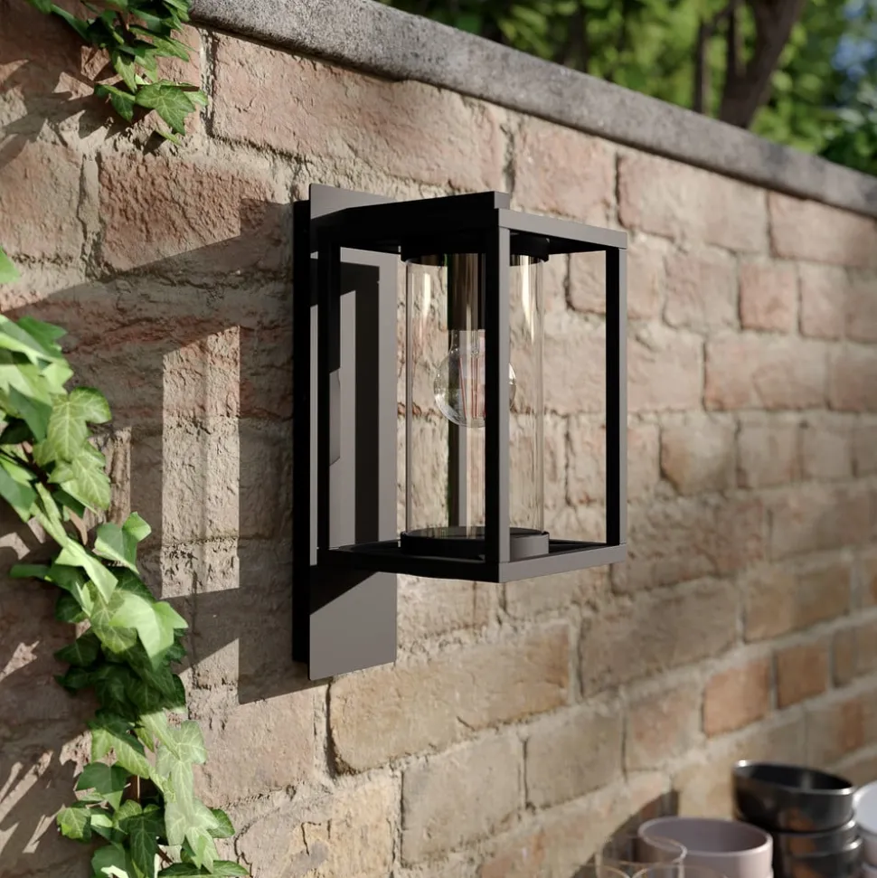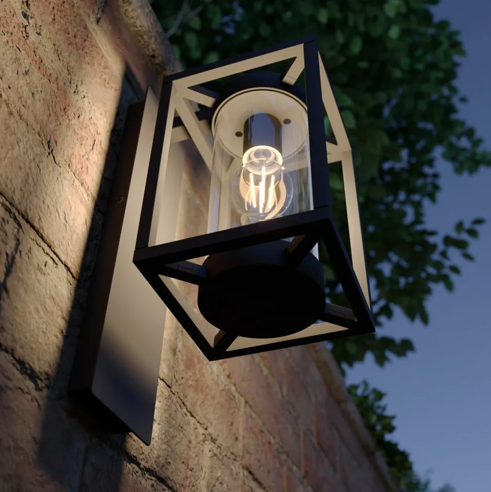 Buitenwandlamp Ferda met glazen diffuser De moderne buitenwandlamp Ferda is een stijlvolle buitenlamp die indruk maakt met zijn geometrische vormen. De hoekige en hoekige behuizing van de buitenlamp is gemaakt van robuust aluminium in antraciet en biedt een duidelijk zicht op de cilindrische glazen diffuser. De te gebruiken lamp is dus duidelijk zichtbaar en moet zorgvuldig worden gekozen zodat deze goed past in het algemene ontwerp. LED filament lampen zijn ideaal, zowel visueel als qua technologie.