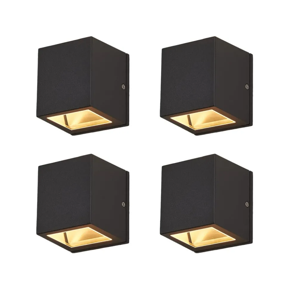 Maurice kubusvormige buitenwandlamp in een set van 4 De halogeen buitenwandlamp Maurice garandeert langdurig plezier dankzij de eenvoudige vorm en kan buiten op verschillende manieren worden gebruikt. De mooie, indirecte verlichtingseffecten, die er niet alleen goed uitzien maar ook elke avond voor de nodige oriëntatie in het donker zorgen, zijn het benadrukken waard. De beschermingsgraad IP54 biedt voldoende bescherming tegen het binnendringen van stof en spatwater. Maurice is hier verkrijgbaar in een praktisch 4-pack.