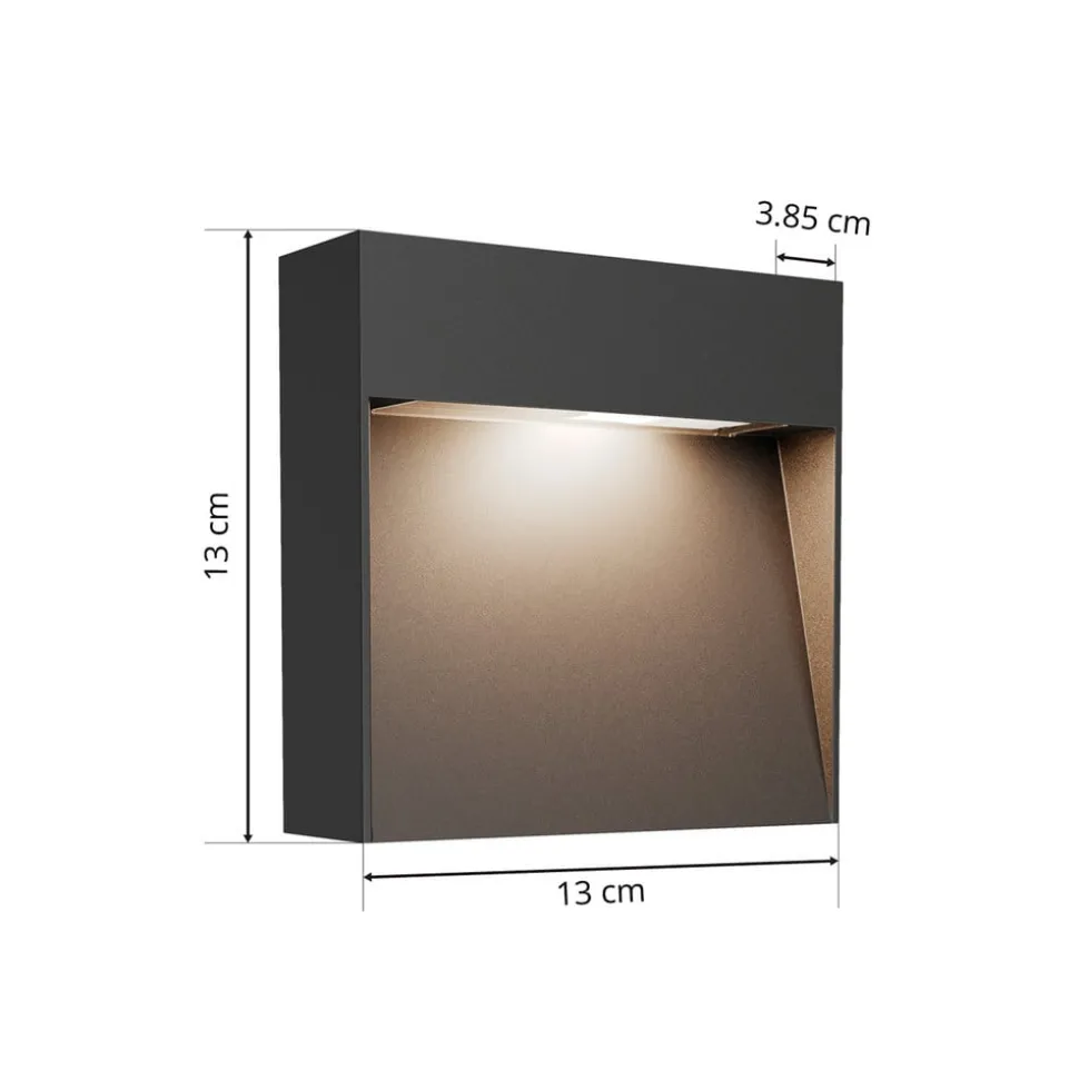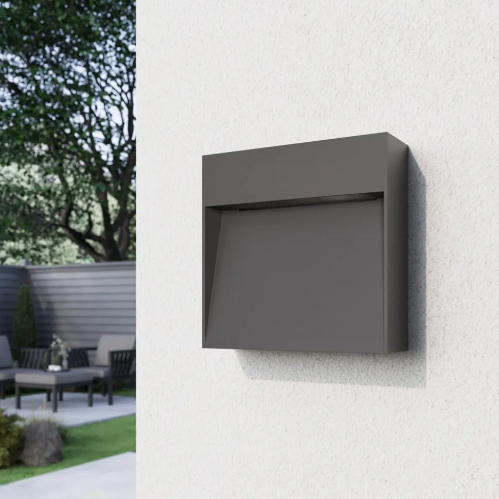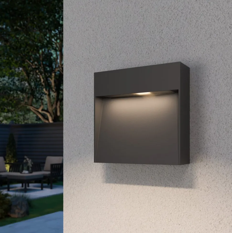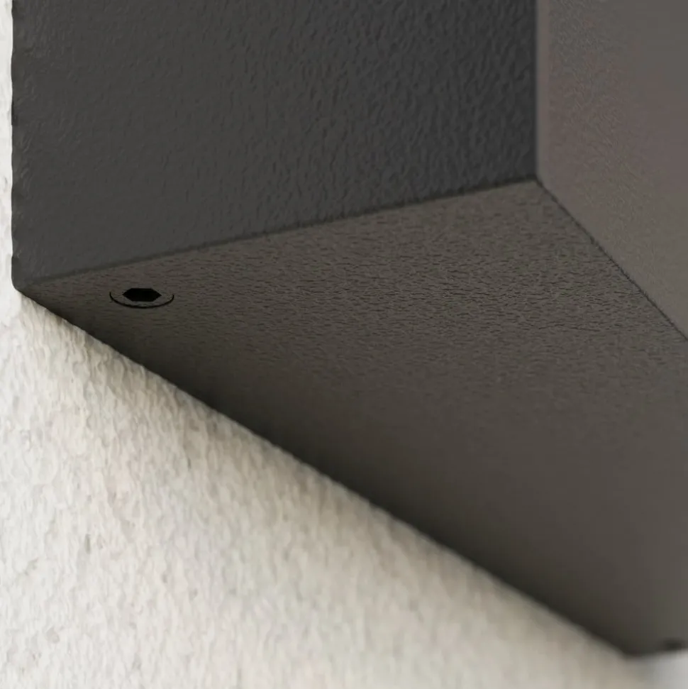 Vierkante LED buiten wandlamp Noreia met naar beneden gericht licht Noreia is een LED buiten wandlamp met een hoge beschermingsgraad IP65 die gemakkelijk buiten kan worden gebruikt omdat ze voldoende beschermd is tegen vuil en water. De aluminium behuizing heeft een antracietkleurige afwerking die bij veel gevels past en tijdloos oogt. De gebruikte G9-lamp straalt zijn licht naar beneden uit, wat een aangenaam licht geeft voor een goede oriëntatie zonder te verblinden. De hoekige basisvorm kan ook heel goed worden gecombineerd met moderne architectuur, maar heeft ook een aangenaam tijdloos effect, zodat hij ook in een meer klassieke omgeving kan worden gebruikt.