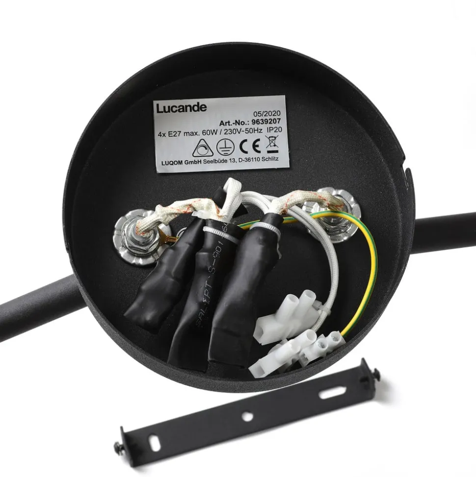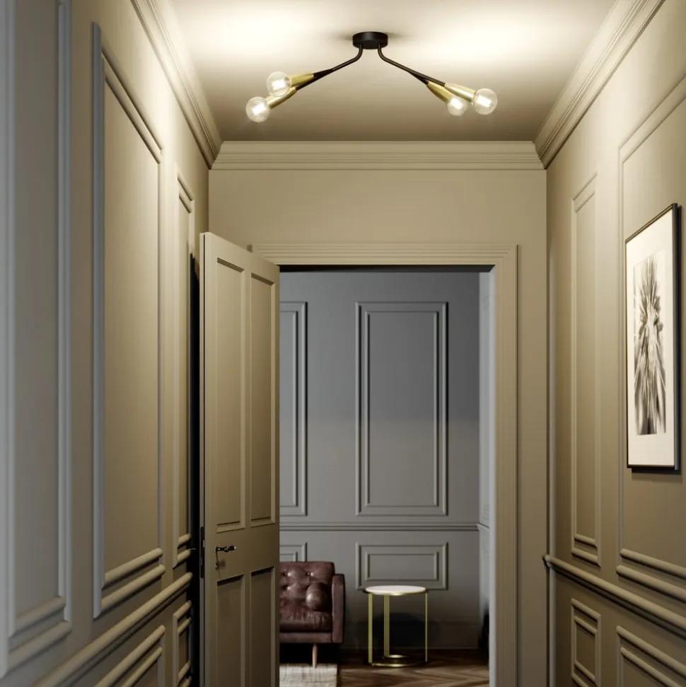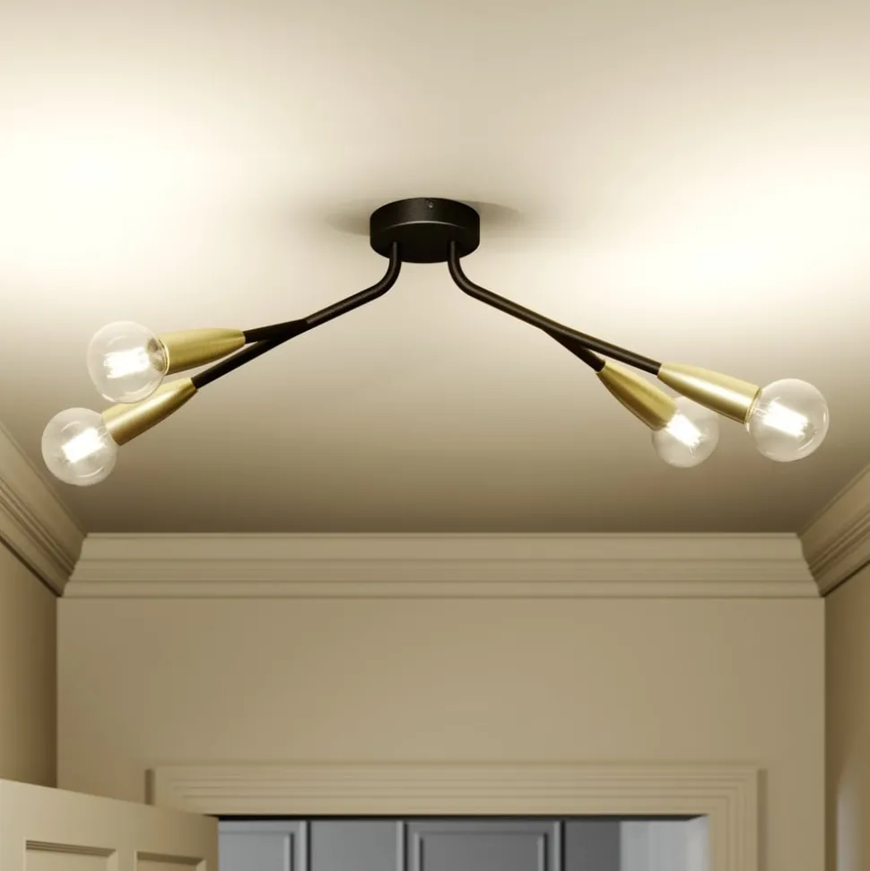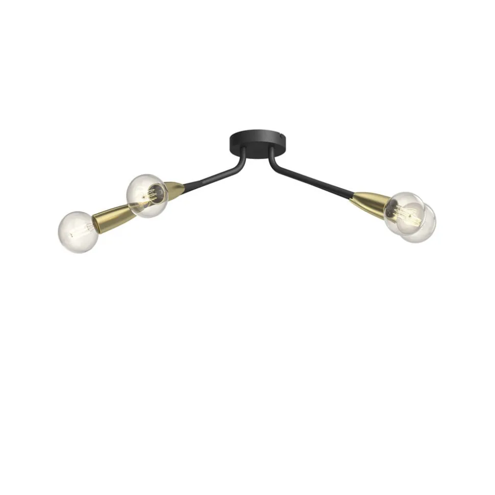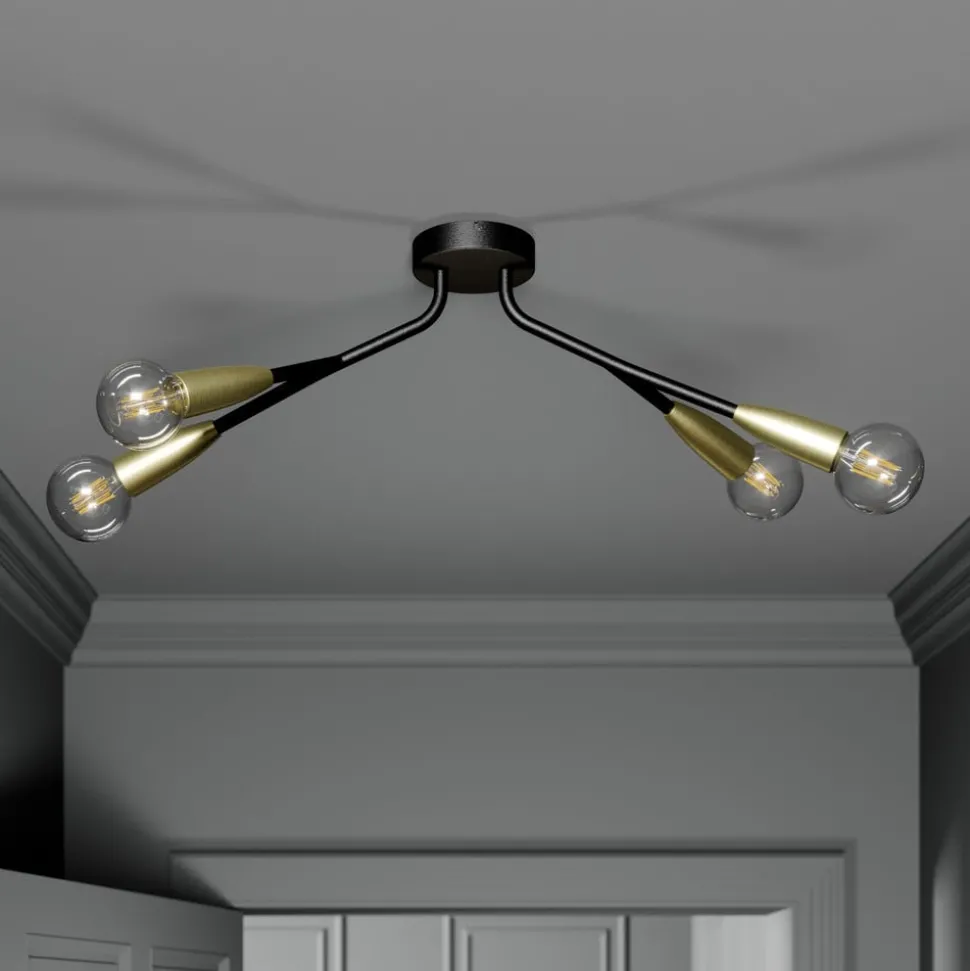 Vierlamps plafondlamp met vier lampen Carlea in zwart met messing kleurige fittingen