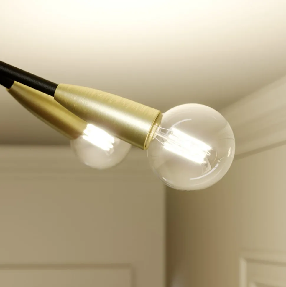 Carlea is een modern verlichtingselement dat in gangen, keukens en woonkamers altijd goed tot zijn recht komt. De designgerichte uitstraling is aantrekkelijk en stijlvol en kan worden gecombineerd met diverse eigentijdse inrichtingen. De lamparmen vertakken zich in twee richtingen en elk uiteinde in twee lampfittingen voor E27-lichtbron. Elke fitting is versierd met een goed zichtbaar metalen element in messing, dat een mooi contrast vormt met het zwarte oppervlak van de rest van het frame.