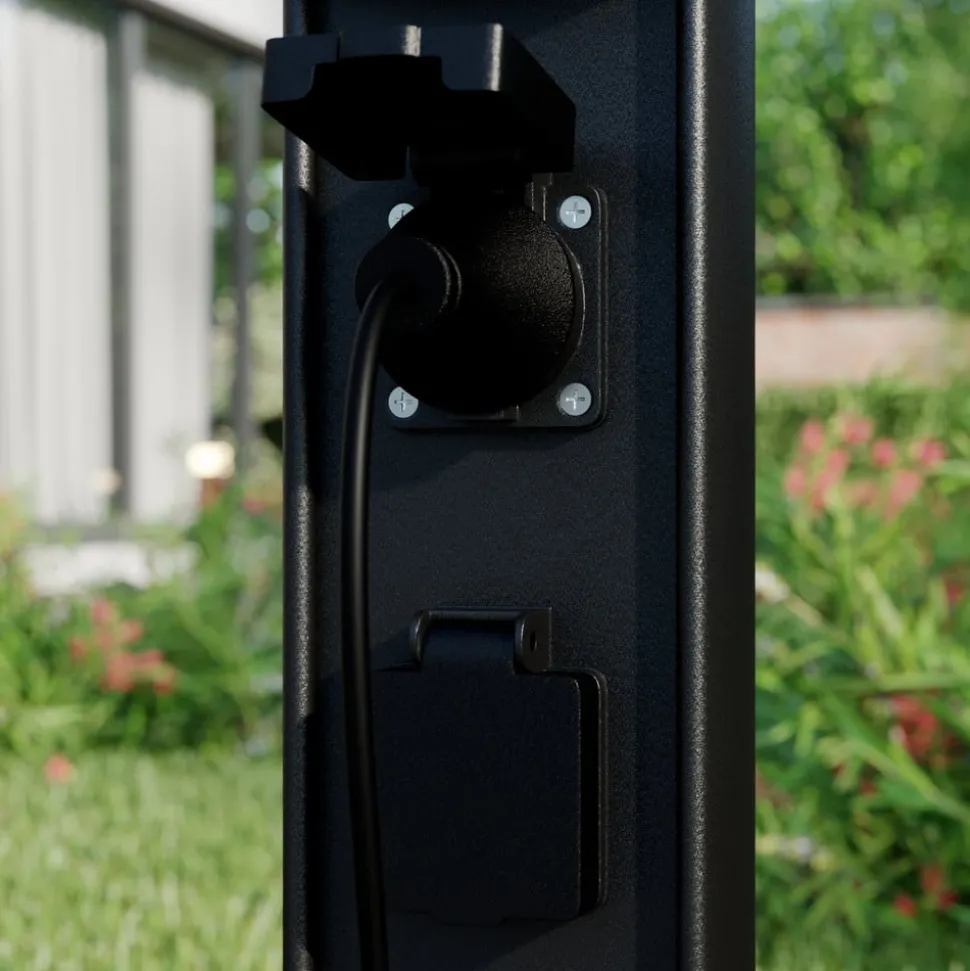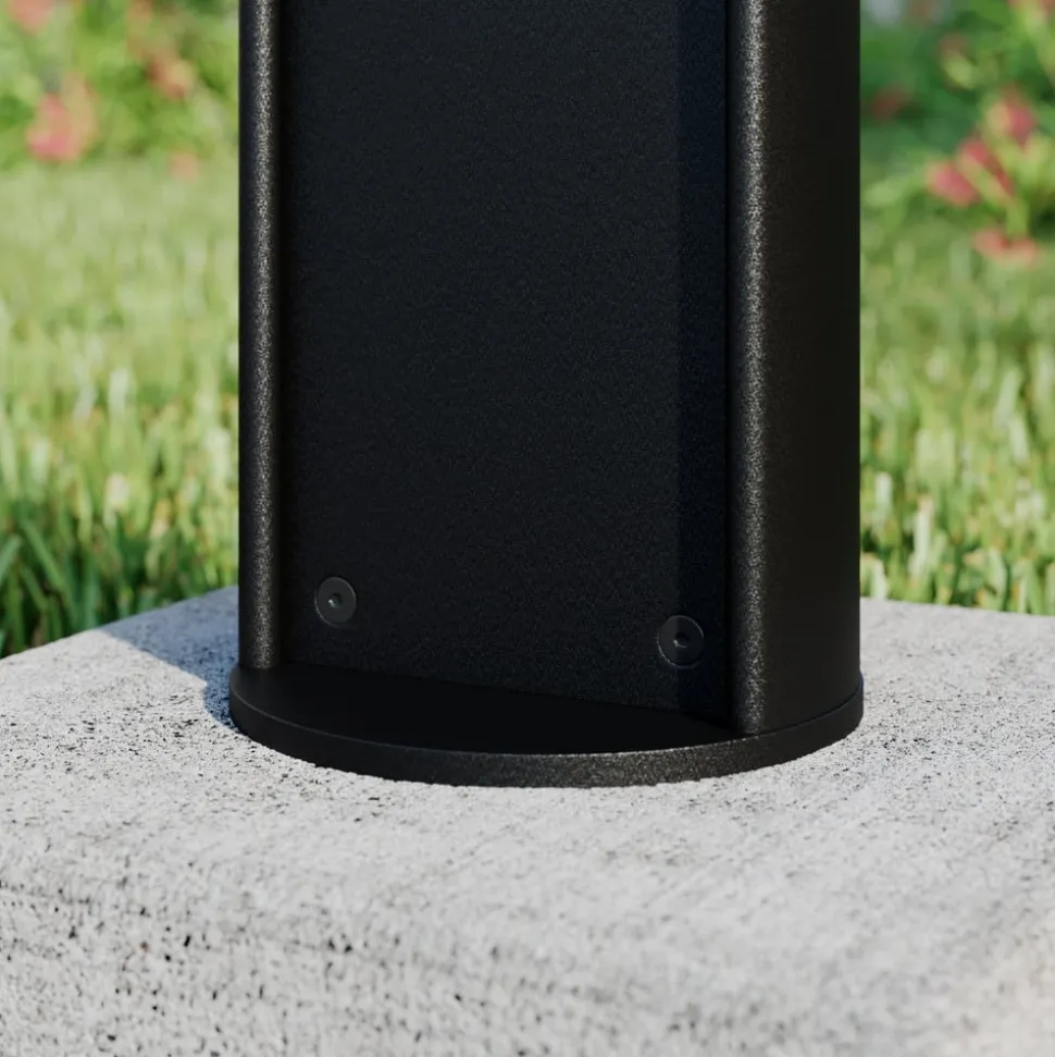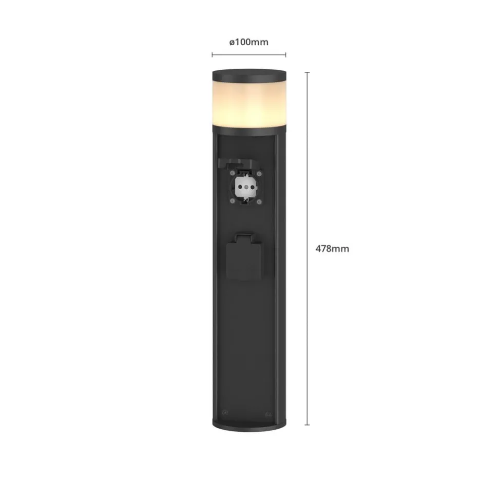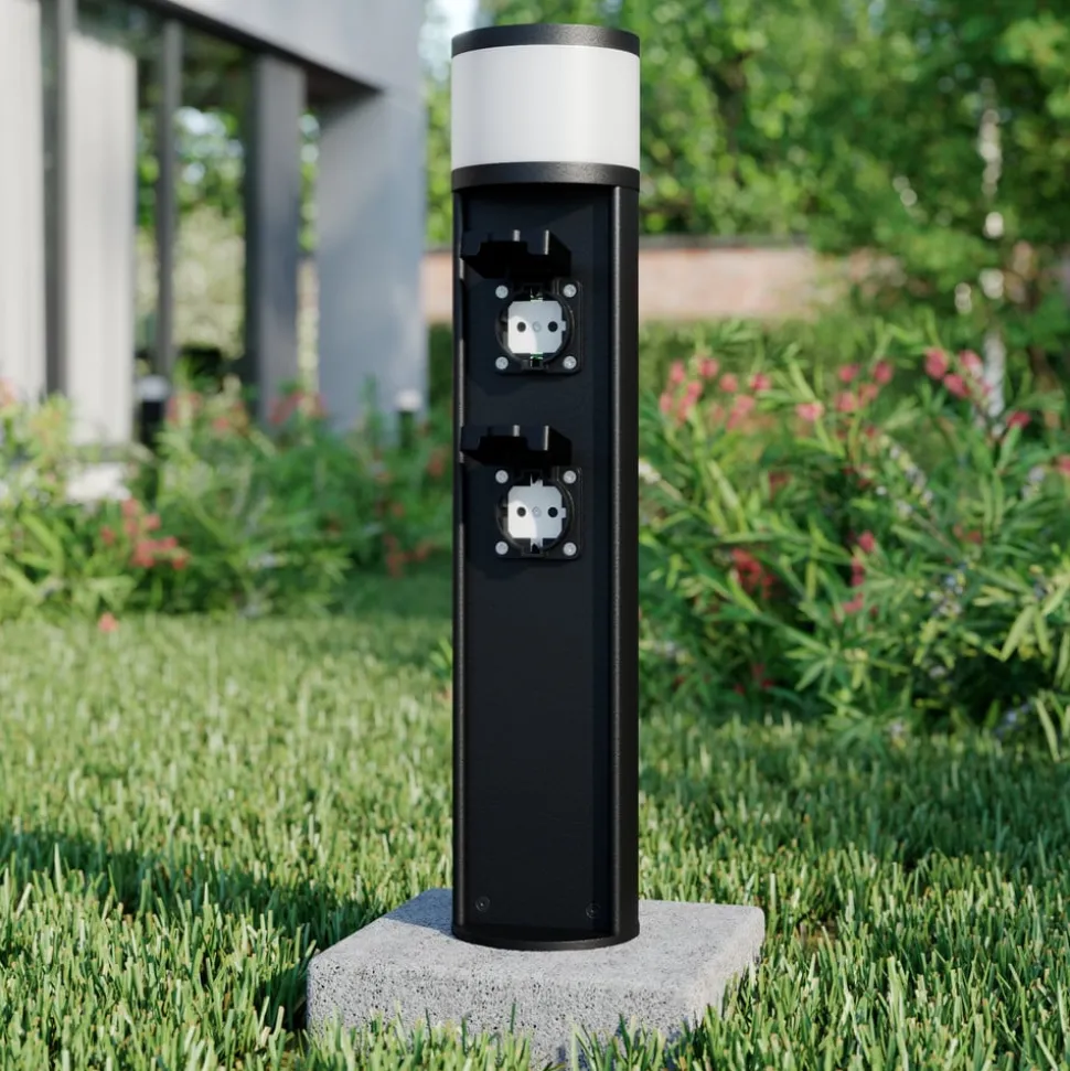 Sokkellamp Corban – verlichting en voeding voor buiten De sokkellamp Corban heeft een eenvoudig ontwerp waardoor de lamp een visueel ingetogen verlichtingsaccent vormt in buitenruimtes. Bovendien zijn er twee stopcontacten in de aluminium behuizing ingebouwd, die geschikt zijn voor een maximaal totaal vermogen van 3.680 watt. Corban zorgt zo voor een stroomvoorziening in de buitenruimte en zet tegelijkertijd bloemperken, paden of patio’s in het juiste licht.