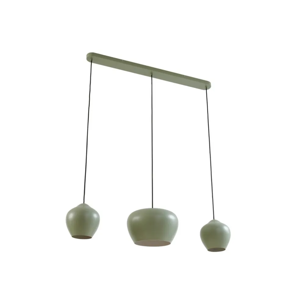 Lucande hanglamp Malisa, groen, 3-lamps, metaal, lengte 90cm