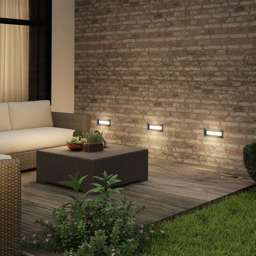 Zo is de moderne LED-wandinbouwarmatuur Lachlain ideaal voor de verlichting van trappenhuizen in de buitenruimte. Met zijn hoekige, langwerpige vorm en de donkergrijze aluminium behuizing is hij niet alleen robuust, maar ook zeer modern vormgegeven. De geïntegreerde LED-technologie is verborgen achter een witte kunststof diffuser, die het licht gelijkmatig en zonder verblinding in de omgeving uitstraalt. Niet alleen het trappenhuis wordt veilig verlicht, maar de LED-inbouwarmatuur Lachlain zorgt ook voor heldere oriëntatiepunten in het donker op de buitengevel.