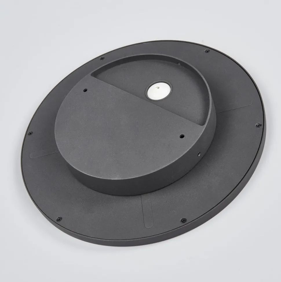 Ronde LED buiten plafondlamp Malena in antraciet met geïntegreerde sensor Met haar eenvoudige ronde vorm past Malena bij veel stijlen en ziet ze er zeer tijdloos uit. Het aluminium frame heeft een antracietkleurige afwerking en in het midden van het armatuur zit een schijf van wit kunststof die het licht gelijkmatig verspreidt. Malena is niet alleen geschikt voor gebruik aan een plafond, maar ook voor wandmontage. De LED buiten plafondlamp heeft ook een ingebouwde sensor, waardoor Malena een functioneel verlichtingsobject voor buiten is. Afhankelijk van of de lamp aan het plafond of aan de muur wordt gebruikt, is de detectiehoek 360° of 150°. De sensor reageert op een bereik tot 6 m en de lichtduur kan worden ingesteld (10 s/90 s/3 min/10 min). De lamp heeft een corridorfunctie, zodat hij de hele nacht brandt met een lage basishelderheid zodat je altijd je weg kunt vinden. De lichtsterkte schakelt pas na een bepaalde tijd nadat beweging is gedetecteerd over naar honderd procent.