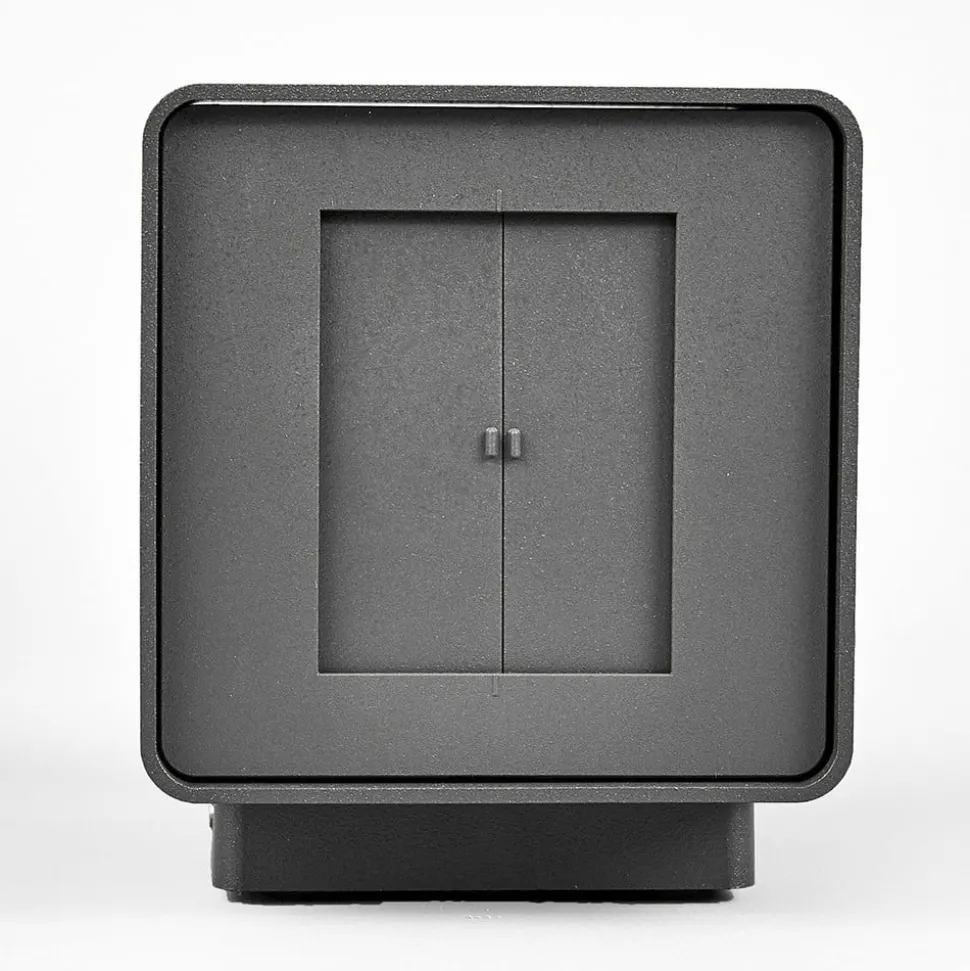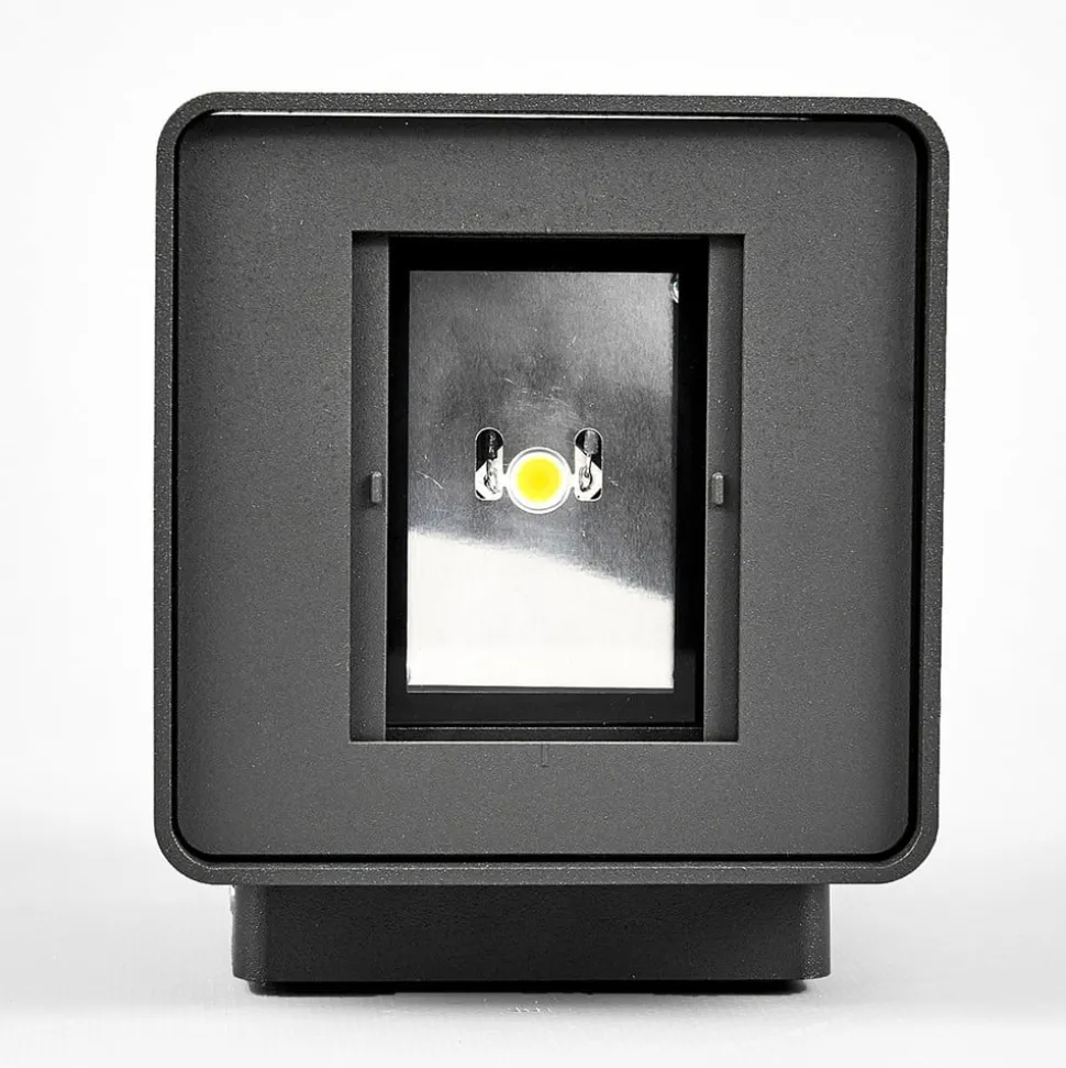 Aaron hoekige LED buiten wandlamp in grafietgrijs Met grafietgrijs is gekozen voor een kleurafwerking die zowel eigentijds als tijdloos is en daarom langdurig plezier van het product belooft. Dankzij de hoekige vorm is het ontwerp van het armatuur aangenaam discreet en past het bij veel gevels en stijlen. Het licht wordt zowel naar boven als naar beneden uitgestraald en de LED’s van het merk Cree schijnen in een warmwit licht dat de meeste mensen aantrekkelijk en uitnodigend vinden. Met een laag energieverbruik en een relatief hoge lichtstroom is Aaron een zeer energiezuinige LED buiten wandlamp, die gemakkelijk is voor de portemonnee. De hoek van de lichtuitstraling kan zowel naar boven als naar beneden worden aangepast, van zeer breed tot zeer smal. Hierdoor kunnen prachtige effecten worden bereikt, die vaak al van ver te zien zijn in buitenruimtes.
