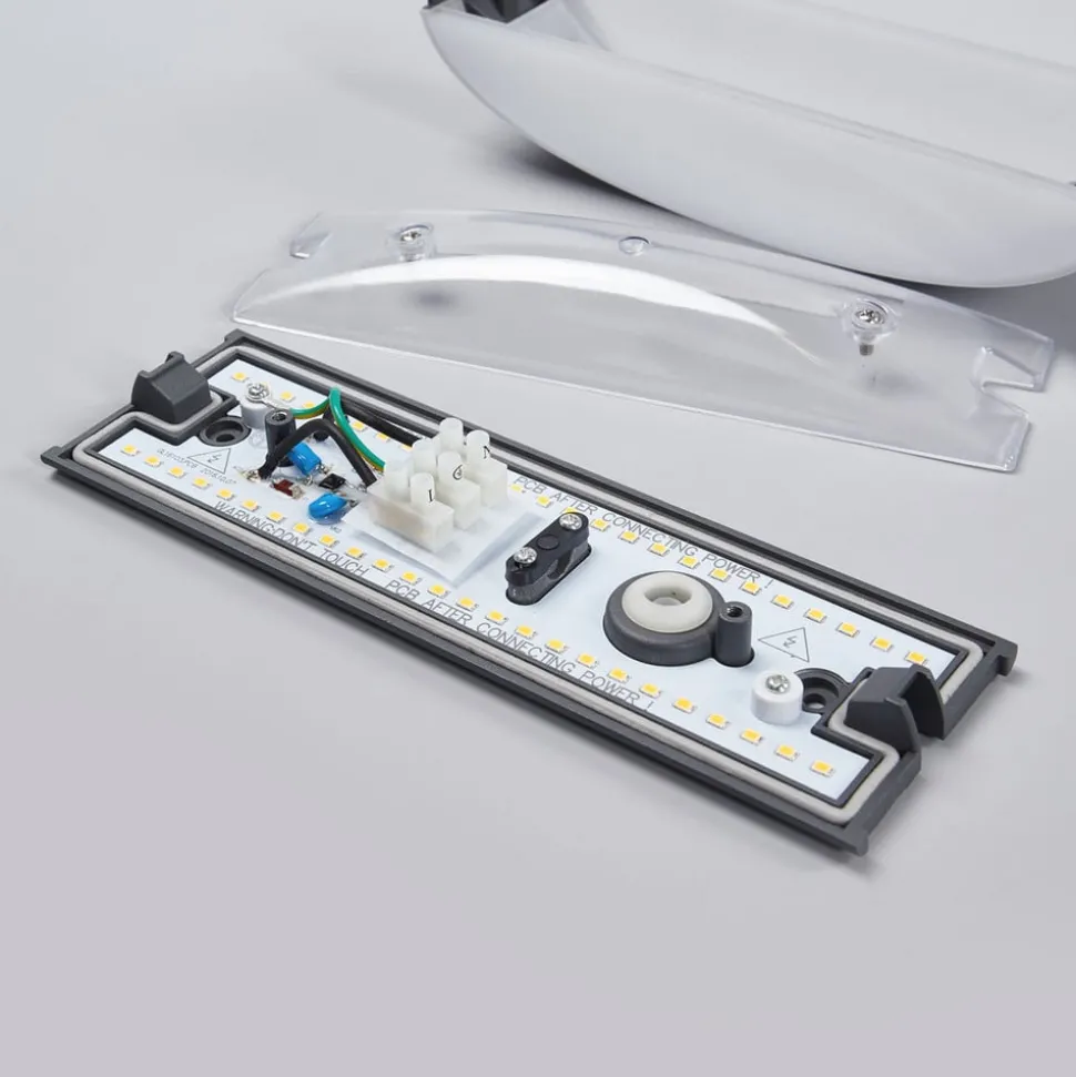 Elegante LED buiten wandlamp Akira met warmwitte lichtkleur Akira heeft een aantrekkelijk uiterlijk met lichte rondingen dat perfect past bij moderne woonstijlen. Het licht van de warmwitte LED’s wordt naar boven en naar beneden uitgestraald, waarbij de LED’s bedekt zijn met wit polycarbonaat zodat het licht gelijkmatiger lijkt. De beugel of afdekking die de armatuur van de LED buiten wandlamp vormt, is gemaakt van donkergrijs gegoten aluminium.