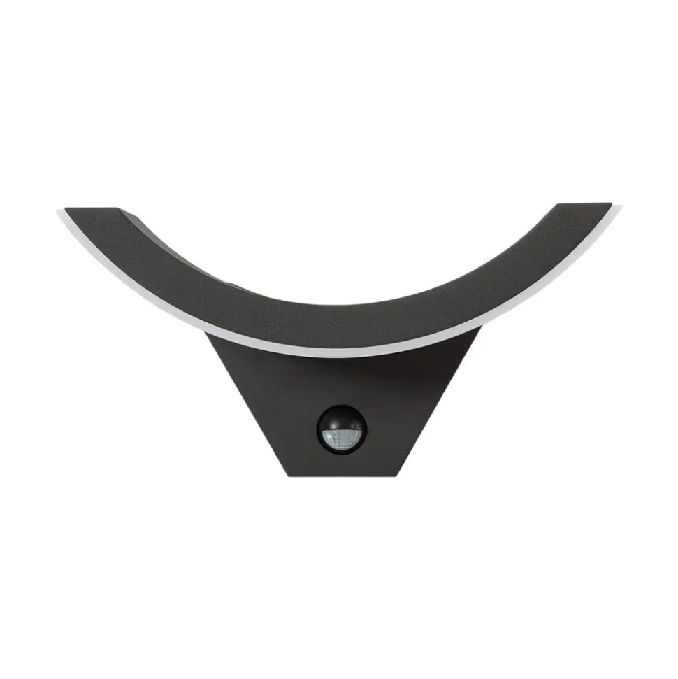 Halfronde LED buiten wandlamp Half met kunststof diffuser en bewegingsmelder De halfronde armatuur van deze buiten wandlamp is naar beneden gericht en geeft aangenaam licht in een warmwitte lichttemperatuur, wat zorgt voor de nodige oriëntatie rond het huis, zelfs in het donker. De witte diffuser wordt aangevuld door een antracietkleurig aluminium frame – een combinatie die er modern en aantrekkelijk uitziet in vele omgevingen. De geïntegreerde SMD LED’s zijn een merkproduct van Epistar en worden gekenmerkt door een hoge energie-efficiëntie in vergelijking met veel conventionele lampen. Er is ook een geïntegreerde bewegingsmelder op het frame, waardoor de wandlamp kan worden ingeschakeld wanneer dat nodig is. De bewegingsmelder heeft een maximaal bereik van 9 meter en een detectiehoek van 120°. De duur van de verlichtingstijd kan variabel worden ingesteld, van minimaal 5 seconden tot maximaal 8 minuten. De schemerwaarde kan ook worden gewijzigd.