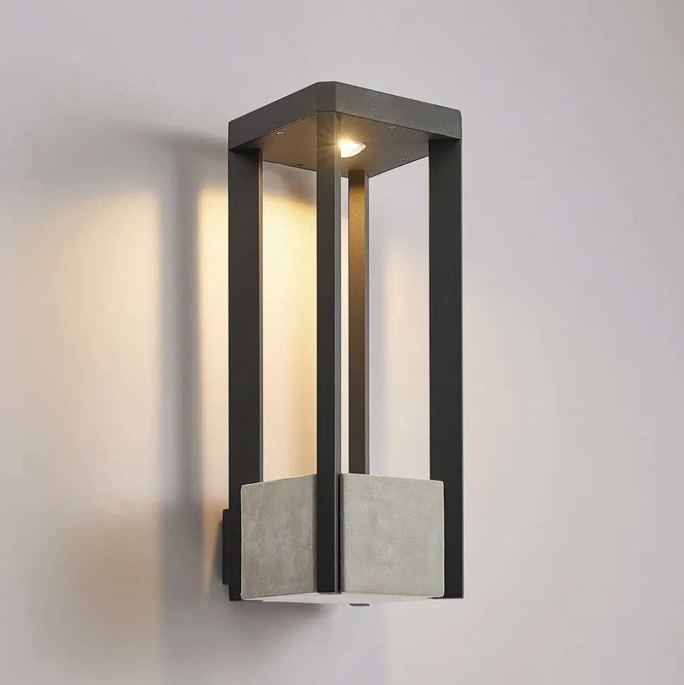 Lucande LED buiten wandlamp Kalisa, IP65, grijs, metaal