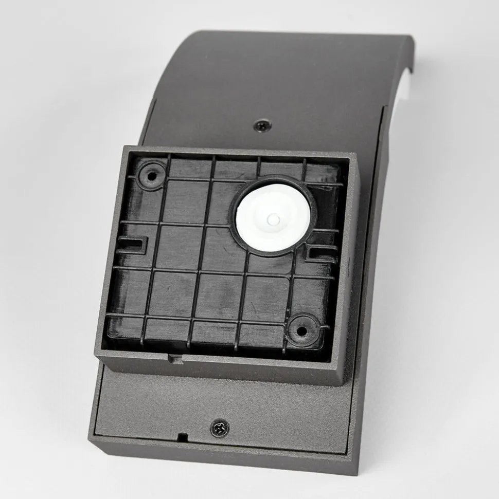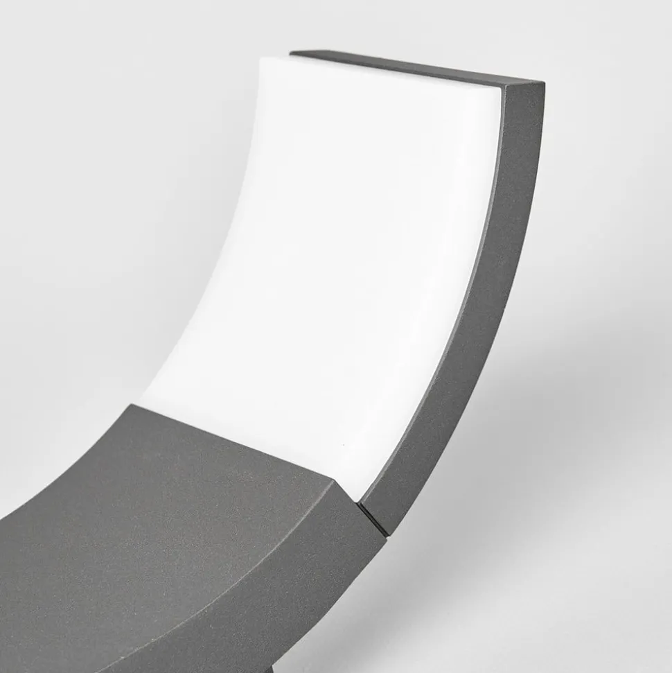 Timm – buitenwandlamp met LED’s De buitenwandlamp Timm is een prachtige lichtbron voor buiten, en niet alleen omdat ze uitgerust is met LED’s. De armatuur is licht hellend en gemaakt van aluminium met een grafietgrijs getint oppervlak. De LED lampen bevinden zich in het bovenste gedeelte en worden beschermd door een witte afdekking, die een zachtere lichtverdeling mogelijk maakt. Timm kan worden gebruikt als buitenwandlamp op gevels van huizen, maar kan ook gemakkelijk op andere soorten metselwerk worden gemonteerd.