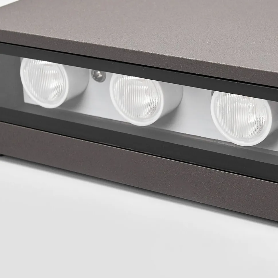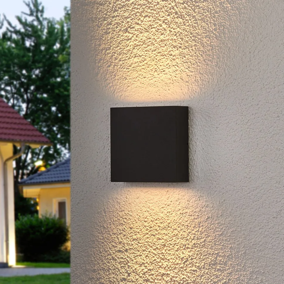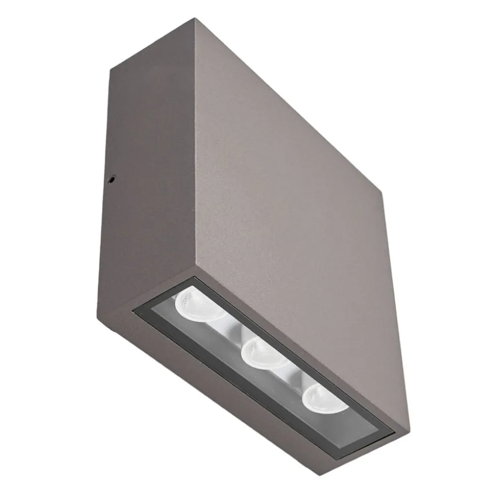 Vierkante LED buiten wandlamp Trixy van grafietgrijs gelakt aluminium Trixy is een LED buiten wandlamp met een zeer tijdloos ontwerp, bestaande uit alleen een donkergrijze aluminium body in een hoekige vorm. Deze is uitgerust met 6 hoogwaardige LED’s van Cree, waarvan er zich drie bovenaan en drie onderaan bevinden. Het licht ziet er zelfs van een afstand zeer indrukwekkend uit wanneer het naar boven en beneden schijnt en creëert een indrukwekkend lichtbeeld op de muur erachter. Natuurlijk past de sobere, puristische vorm goed in een moderne omgeving, maar niets houdt de LED buiten wandlamp tegen om gecombineerd te worden met klassieke of zelfs historische gebouwen.