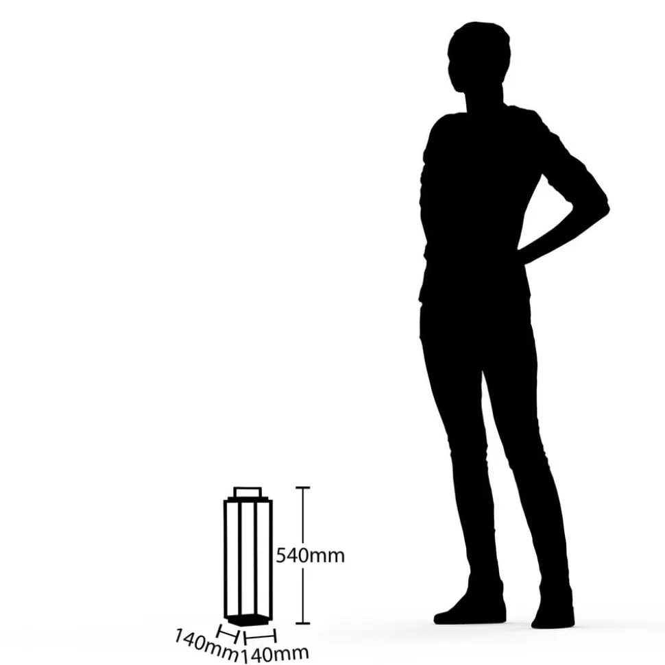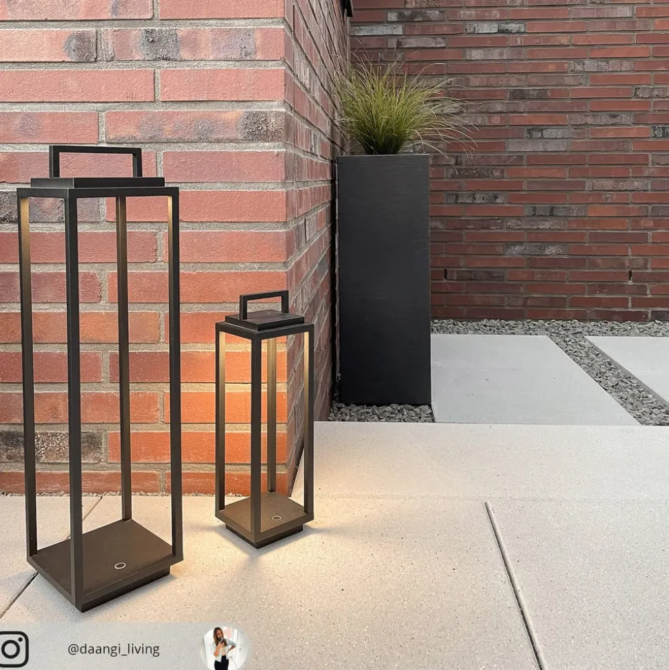 Zwarte Elaja LED lantaarn voor gebruik op het terras of in de tuin De Elaja LED lantaarn voor buiten kan naar wens worden vervoerd en geplaatst, omdat hij onafhankelijk is van de netvoeding dankzij de oplaadmogelijkheid met USB-kabel. De lantaarn heeft ook een touch dim-functie waarmee de helderheid van het licht eenvoudig individueel kan worden aangepast. Het ontwerp is modern en puristisch. De behuizing is volledig gemaakt van gegoten aluminium en heeft een zwart oppervlak. Een praktisch handvat aan de bovenkant maakt het gemakkelijk om te dragen. De LED-module is permanent geïnstalleerd en straalt het warmwit licht naar beneden uit om verblinding te voorkomen. Elaja is een prachtige lichtbron en decoratief object voor tuin en terras.