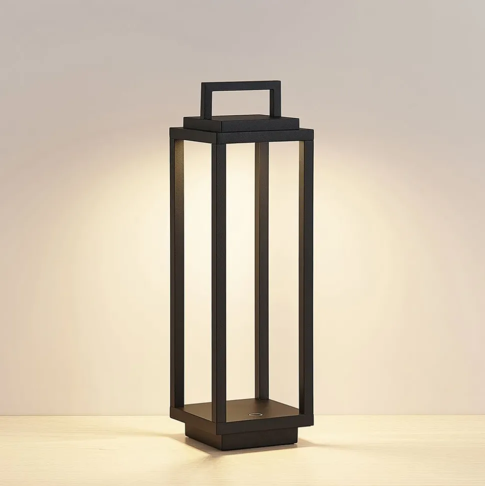 USB-oplaadbare Mirina LED-buitenlantaarn voor tuin en terras De Mirina LED-buitenlantaarn is een prachtig decoratief object dat dankzij de beschermingsgraad IP54 ook in tuinen en op terrassen kan worden gebruikt. De lamp wordt opgeladen met een USB-kabel en kan onafhankelijk van het lichtnet worden geplaatst waar hij het meest nodig is. De lamp heeft ook een praktisch handvat waardoor hij gemakkelijk te dragen is en het mooie en duidelijk gestructureerde ontwerp van de lamp past in verschillende designconcepten. De aluminium behuizing heeft een zwarte afwerking voor een klassieke en solide uitstraling. Dankzij de touch dim-functie kan de helderheid van de lantaarn eenvoudig worden aangepast aan je behoeften.