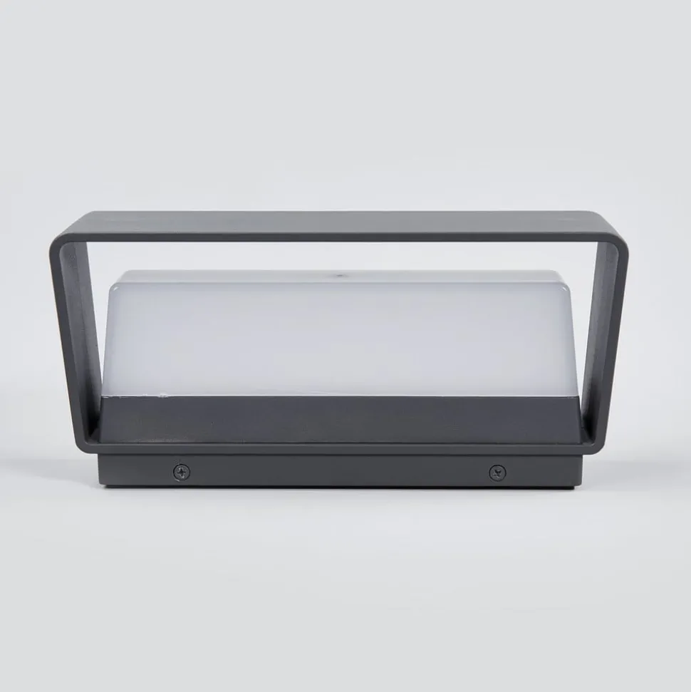 Lucande LED buitenwandlamp Midvig, donkergrijs, hoekig, IP65