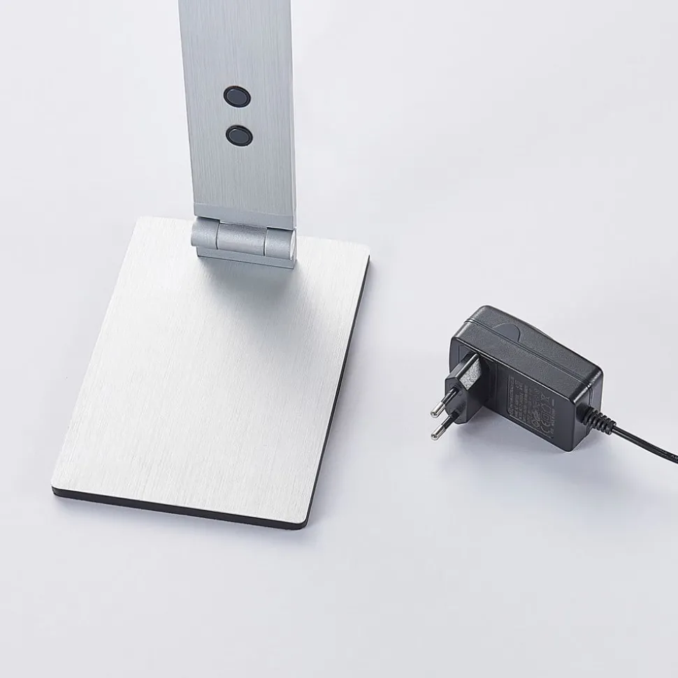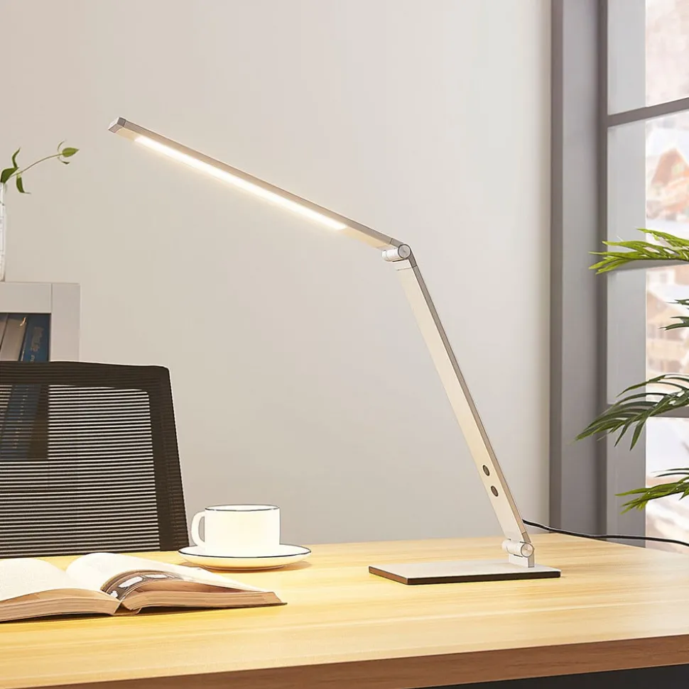 Lucande LED bureaulamp Nicano, grijs, metaal, dimbaar.